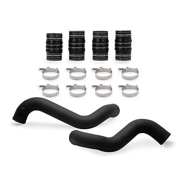 TechSpec Includes: (2) Aluminum Intercooler Pipes–(4) Silicone Boots with DuraCore Technology–(8) Constant-Tension T-Bolt Clamps–Mishimoto Lifetime Warranty