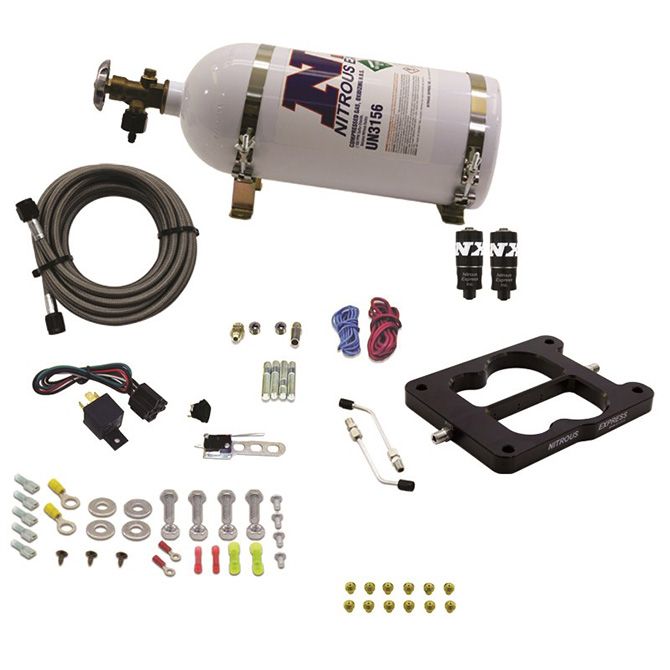 For the enthusiast who wants to use nitrous yet does not want to spend a lot of money, the ?Hitman is the way to go. Equipped with the latest Lightning 45 bottle valve, stainless bottle brackets and the adjustability of three horsepower settings: 100-150-200. The Phase 3 series nitrous plates are the ?Next Generation in nitrous performance and reliability. This new innovation in plates provides superior distribution and outstanding atomization. With no spray bars to sag, split, block airflow, or damage this is truly the ?Next Generation in plate technology. The ?Hitman is the perfect, low cost, introductory system for the nitrous novice.