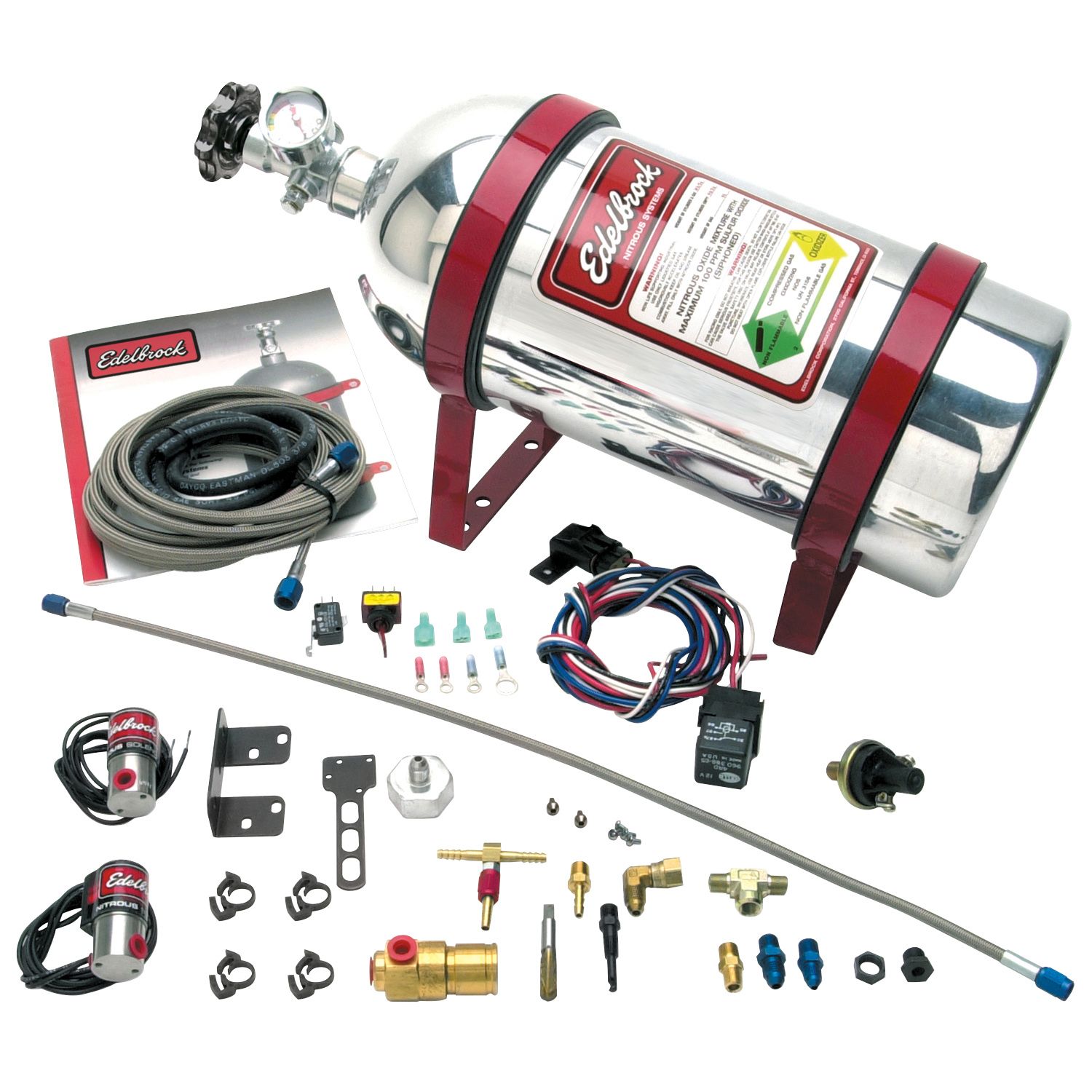 Edelbrock Universal Performer EFI Nitrous Kit #71006 is the best way to get a power increase in your fuel injected late-model street machine. Fits 4, 6 and 8 cylinder engines with return style fuel system and is capable of an 50-70 hp.