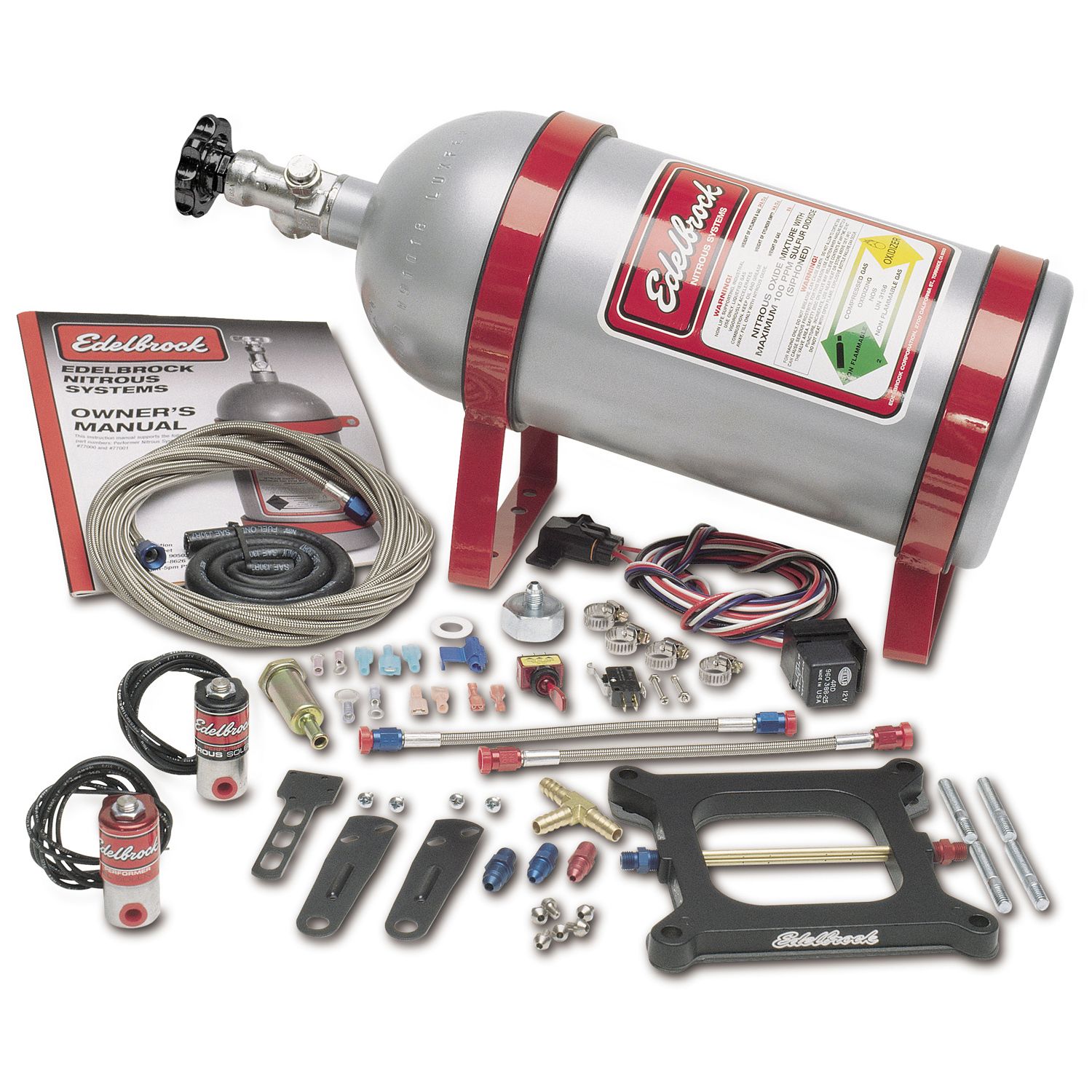 The Edelbrock Performer Nitrous Plate System #70001 is designed to increase your power from 50-100 horsepower. Edelbrock Nitrous systems are simple to install with a 1/2" thick aluminum plate that fits between the carburetor and the intake manifold. Edelbrock nitrous spray bars are precision machined on an EDM machine instead of standard drilling, giving you the best flow characteristics available. This system is for use with square-bore carburetors and has a silver powder coated bottle.