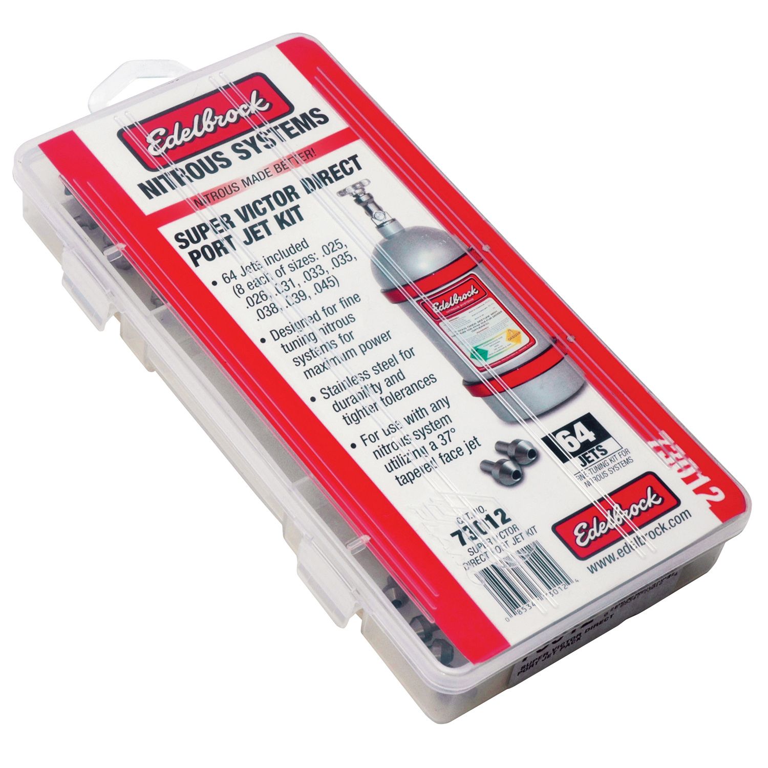 Edelbrock Super Victor Direct Port Jet Pack #73012 was developed for the Super Victor Direct Port Nitrous Systems. Includes total of eight of each 0.020", 0.024", 0.028", 0.032", 0.036", 0.040" and 0.044" for a total of 56 jets.