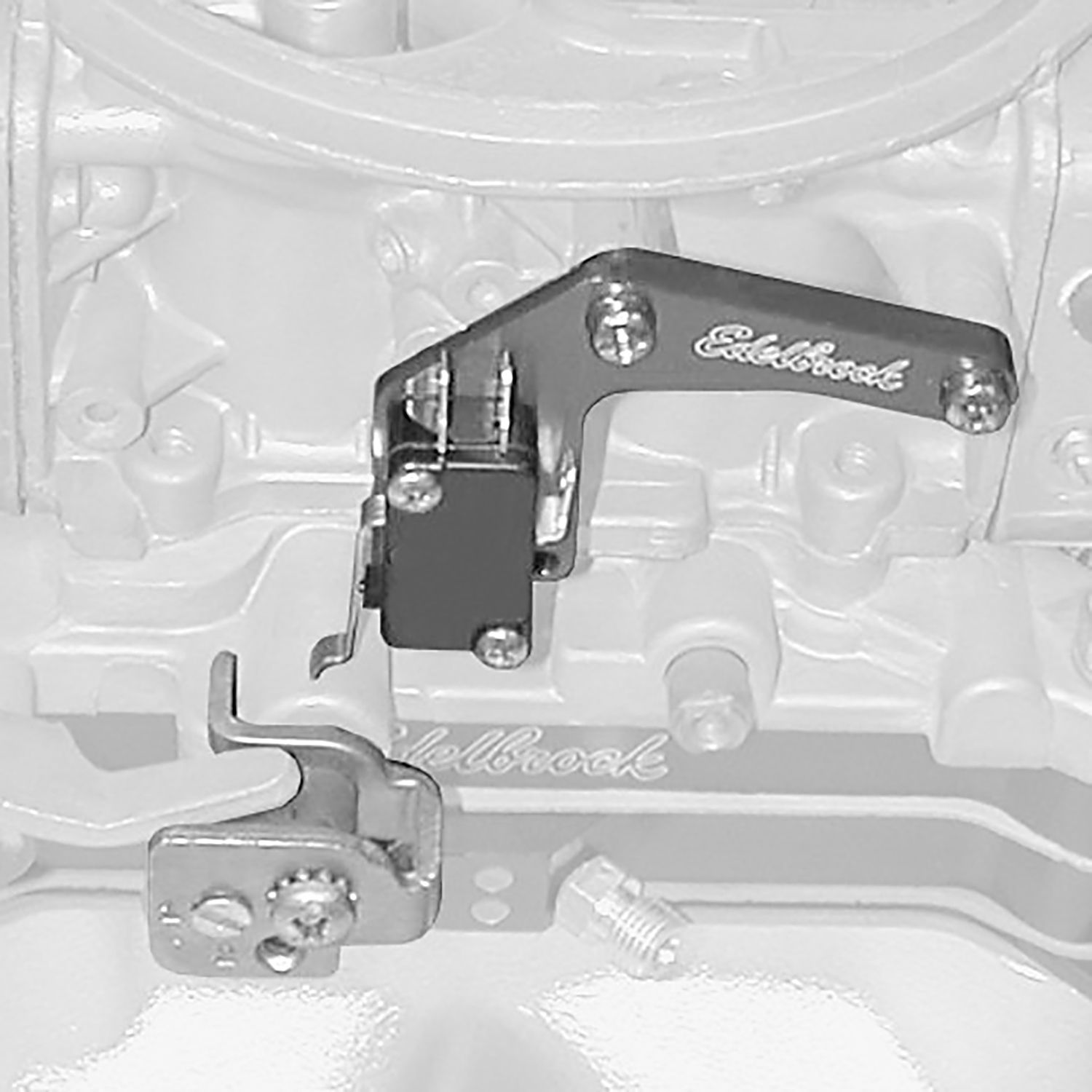 Edelbrock Nitrous Microswitch and Universal Bracket Kit #72282 is for use with Holley standard-flange carburetors without a choke (will not fit H.P. series). Kit includes a snap-action microswitch, mounting hardware and bracket.