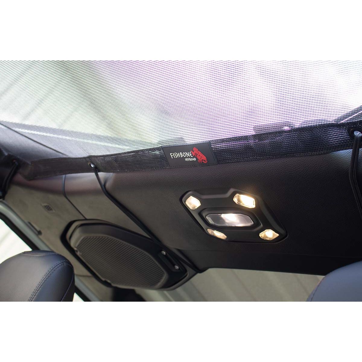 Fishbone Offroad Front Sun Shade: Fits Jeep Wrangler JL, JLU, and Gladiator JT. Durable Nylon Mesh, versatile fit for hard/soft tops and sound bars. Enjoy sun protection and style on your ride!