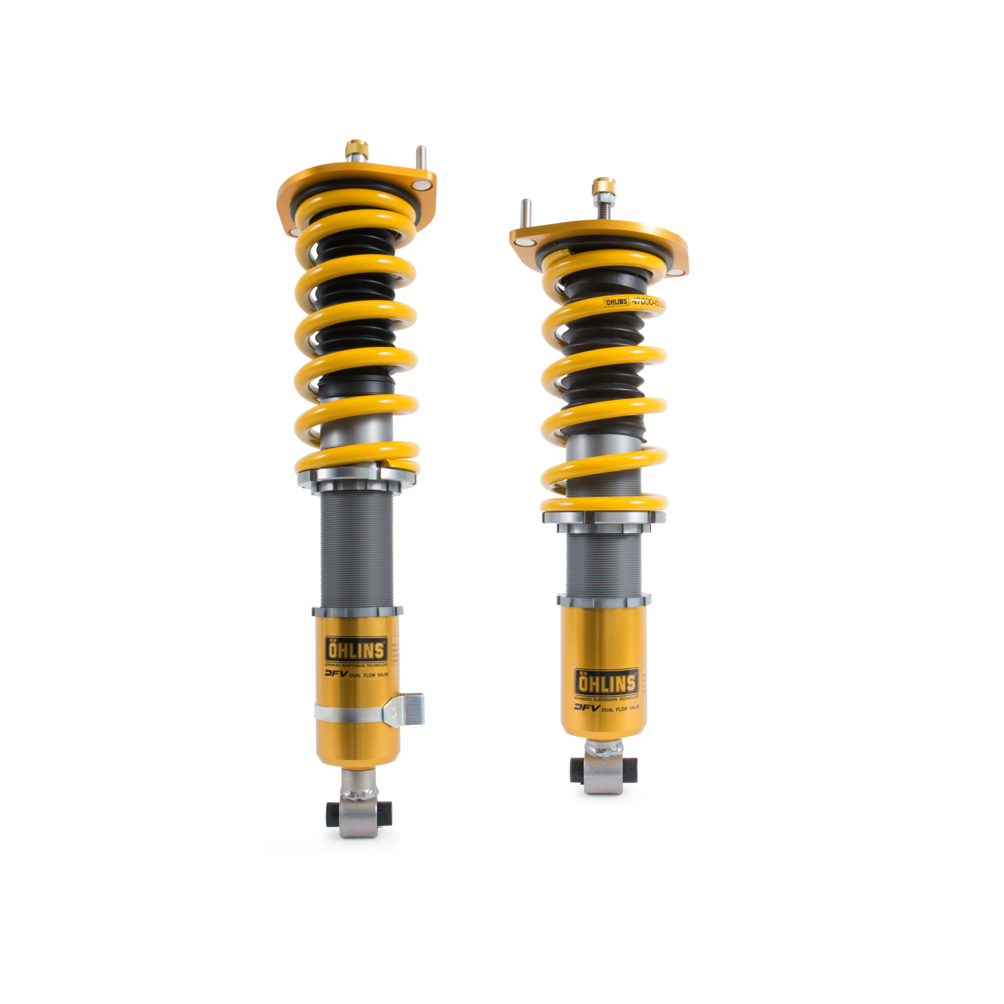 The Road & Track program demonstrates Öhlins' ability to engineer the ultimate suspension system for the spirited driving enthusiast. Öhlins’ Dual Flow Valve technology (DFV) allows for transformed chassis control while maintaining a refined ride quality unsurpassed from the factory or aftermarket. Driver confidence and enjoyment are enhanced to a new level on the road and on the track. Ride height and damping control are adjustable to fine tailor the look and response desired from the driver. Dampers are individually adjustable via a broad range of 20+ clicker settings. Systems feature monotube damper architecture for improved response with strengthened inverted struts and aluminum body shocks for lightweight and improved cooling effect. This combination of features and tuning result in the ultimate daily driver/weekend warrior suspension package.