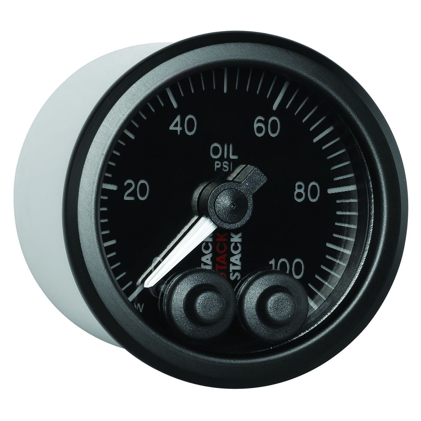 Stack Instruments Series, Gauge, Oil Press, Pro-Control, 52mm, Black, 0-100PSI, 1/8" NPTF Male