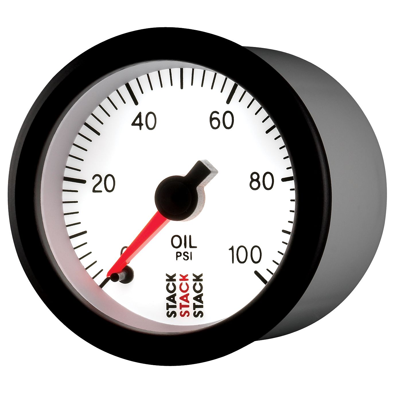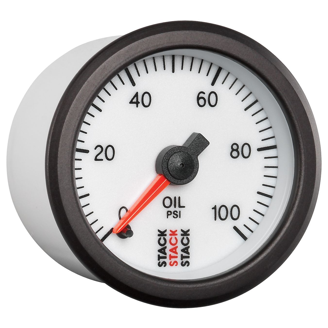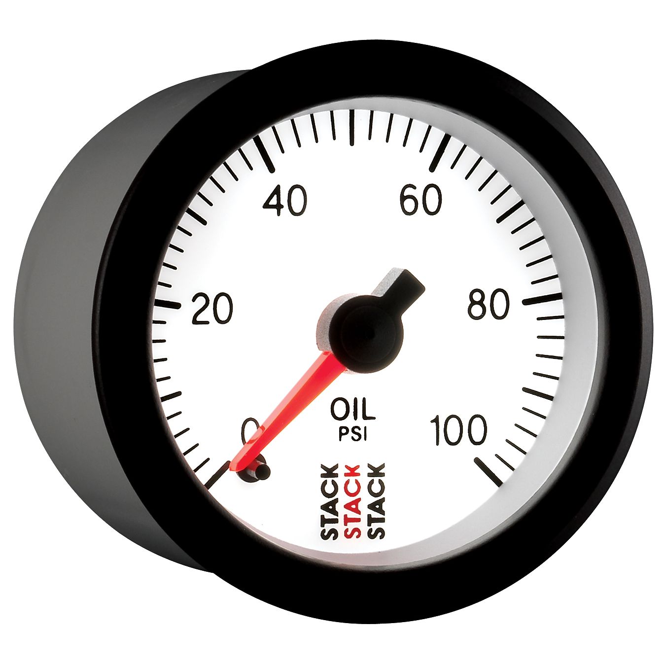 Stack Instruments Series, Gauge, Oil Press, Pro Stepper Motor, 52mm, White, 0-100PSI, 1/8" NPTF Male