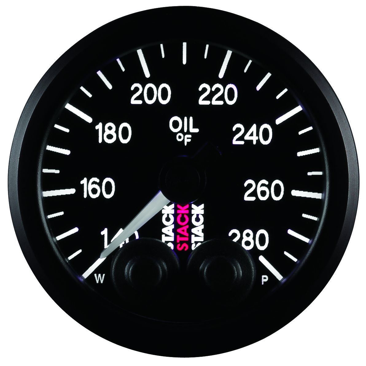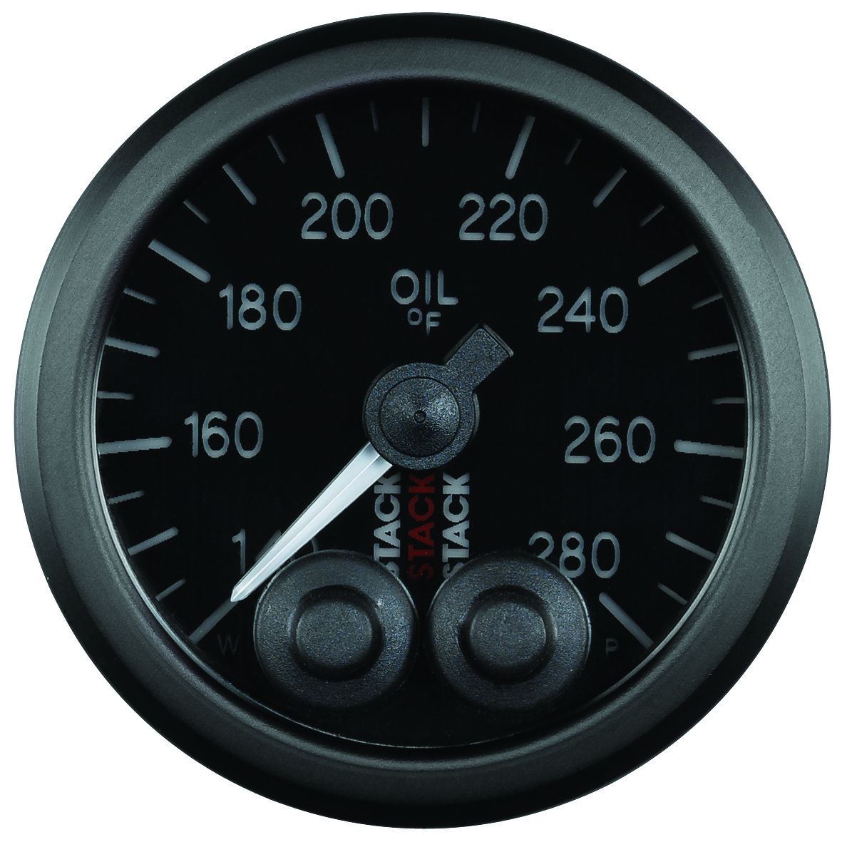 Stack Instruments Series, Gauge, Oil Temp, Pro-Control, 52mm, Black, 140-280 Degrees F, 1/8" NPTF Male