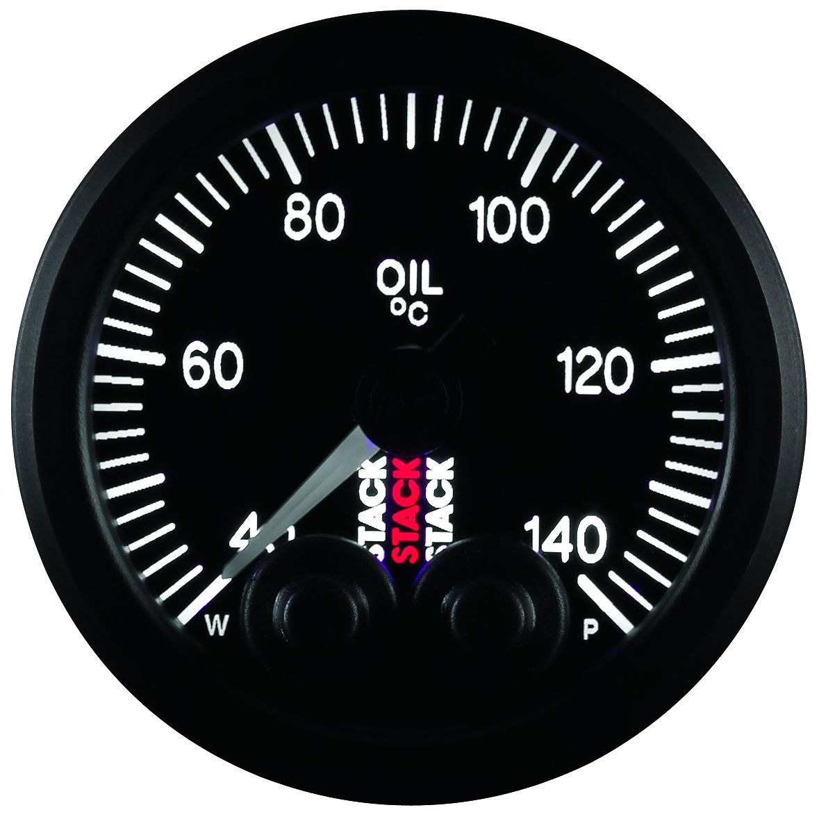 Stack Instruments Series, Gauge, Oil Temp, Pro-Control, 52mm, Black, 40-140 Degrees C, 1/8" NPTF Male