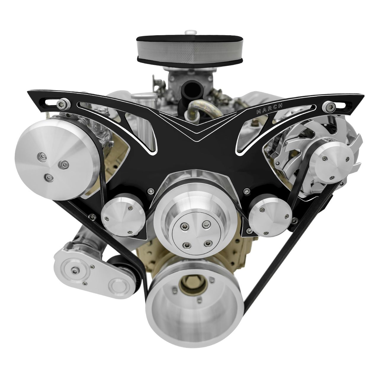 Oldsmobile Style Track Serpentine Kit – AC & ALT – Black Onyx