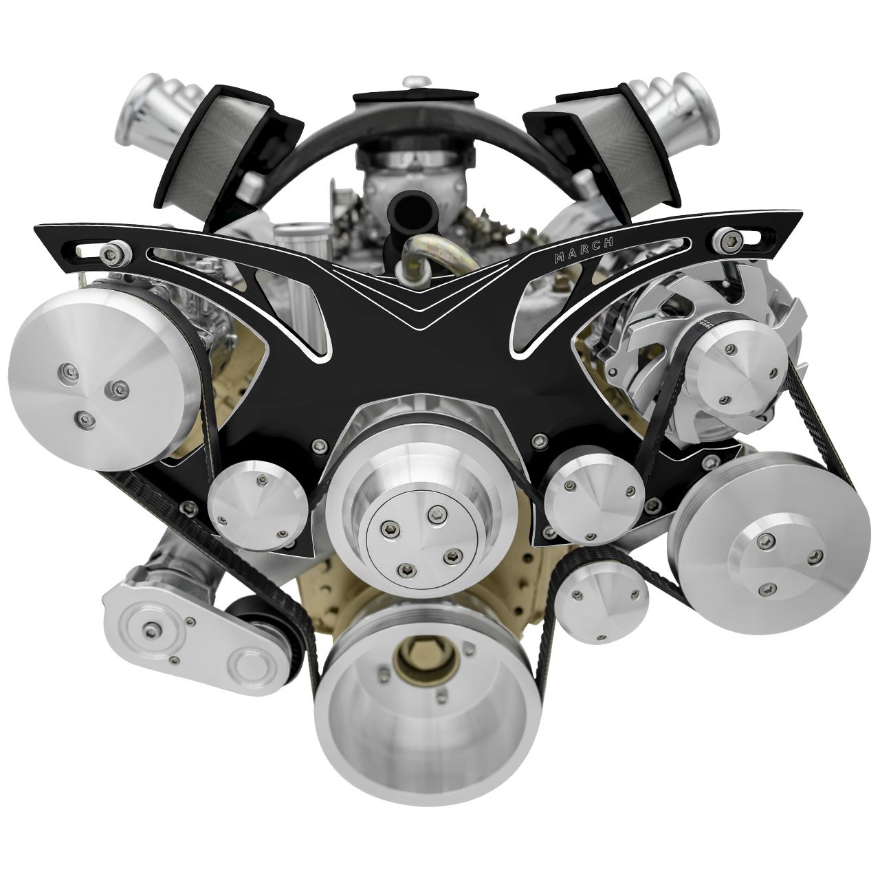 Oldsmobile Style Track Serpentine Kit – AC & PS – Black Onyx