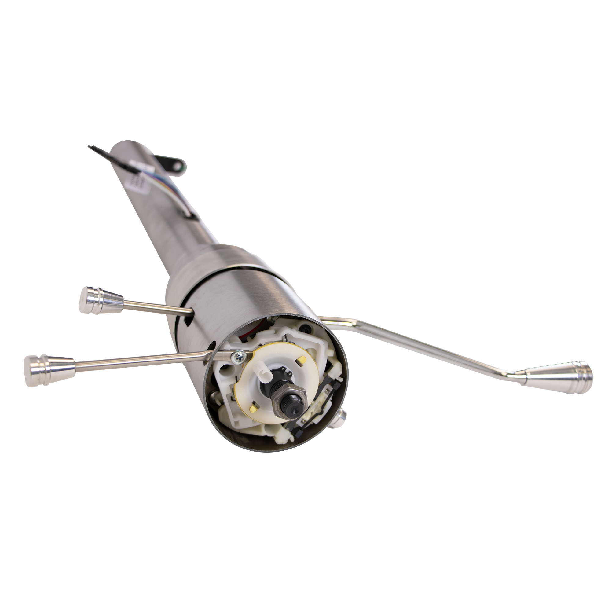 The ididit Universal Tilt Column Shift column was the first on the market to feature a removable, indexable lower shift arm. With 12 possible positions, adjustability is just a turn of a wrench away! Our unique 8-position tilt, self-canceling turn signals, 4-way flashers, horn wiring and our standard dress-up kit are also included with this column. Available in paintable steel, chrome plated steel, black powder coated, brushed or polished aluminum finishes. The brushed finish is clear anodized, making it practically maintenance free! Will work with GM, Ford & Chrysler 3 or 4 speed automatic transmissions.