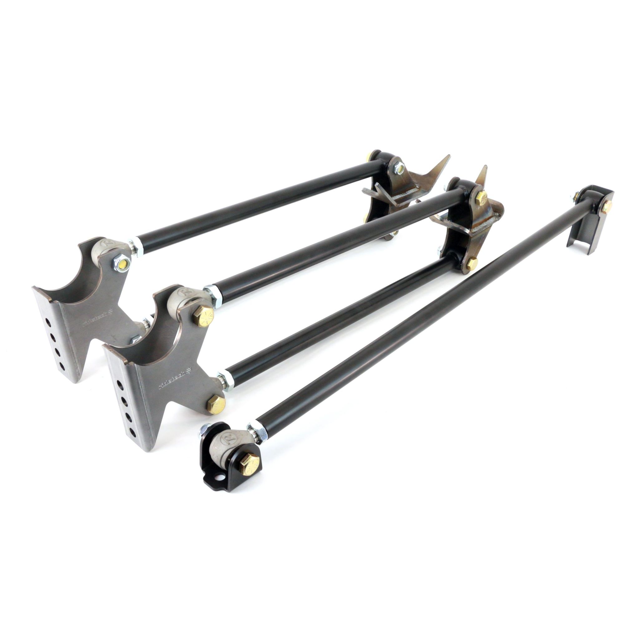 Parallel Four Link , Universal Weld-in with black powder coated bars. Includes parallel bars, panhard bar, brackets, hardware, and installation instructions.