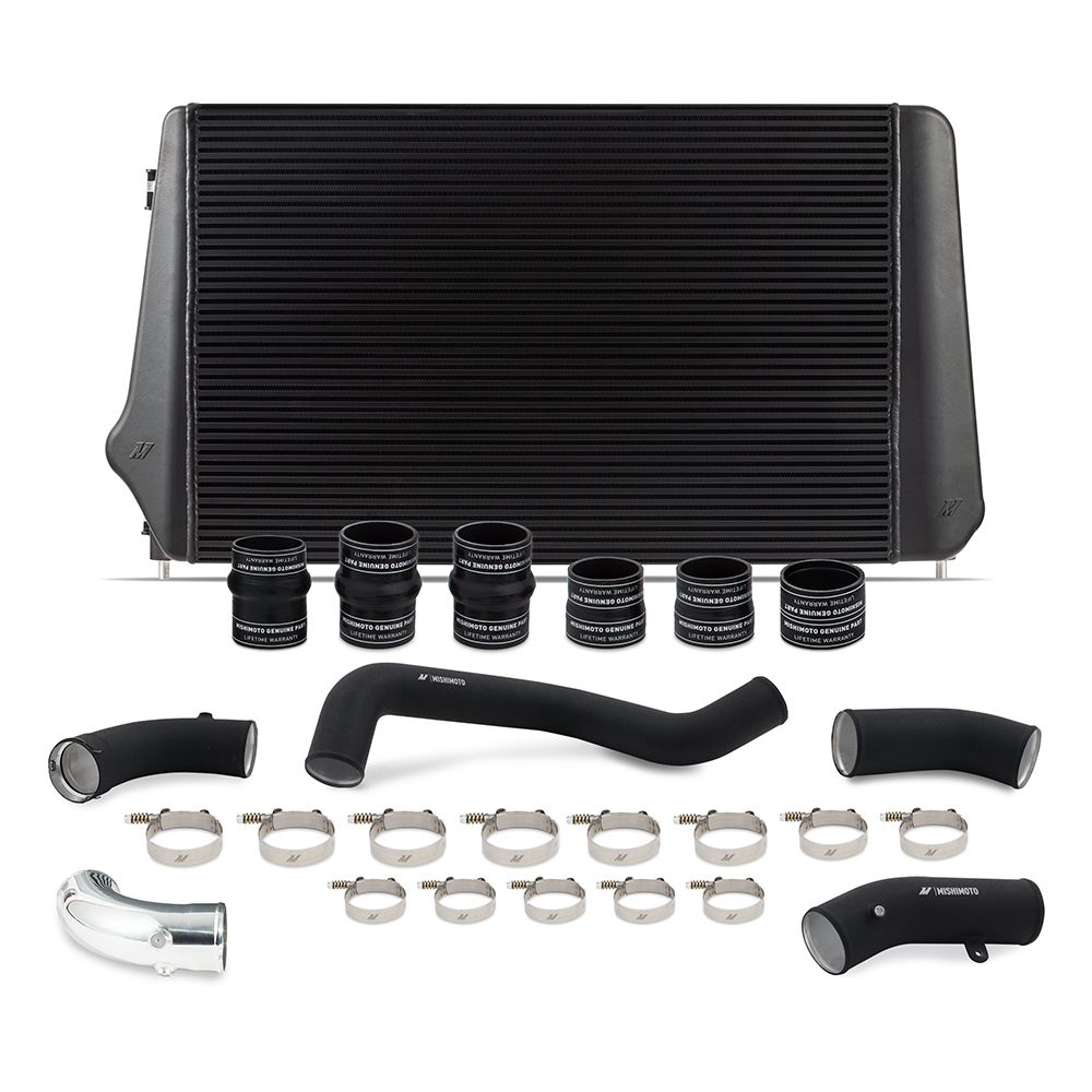 TechSpec Includes: (1) Mishimoto Intercooler–(1) Cold-Side Intercooler Pipe Adapter–(2) Cold-Side Intercooler Pipe–(2) Hot-Side Intercooler Pipe–(3) Cold-Side Intercooler Boot–(3) Hot-Side Intercooler Boot–(13) Constant-Tension T-Bolt Clamp–(2) Intercooler Core Spacer–(2) M8 X 1.25 X 20mm Bolt–(2) M8 X 1.25 X 35mm Bolt–(2) M8 X 1.25 X 60mm Bolt–(6) M8 Washer–Mishimoto Lifetime Warranty