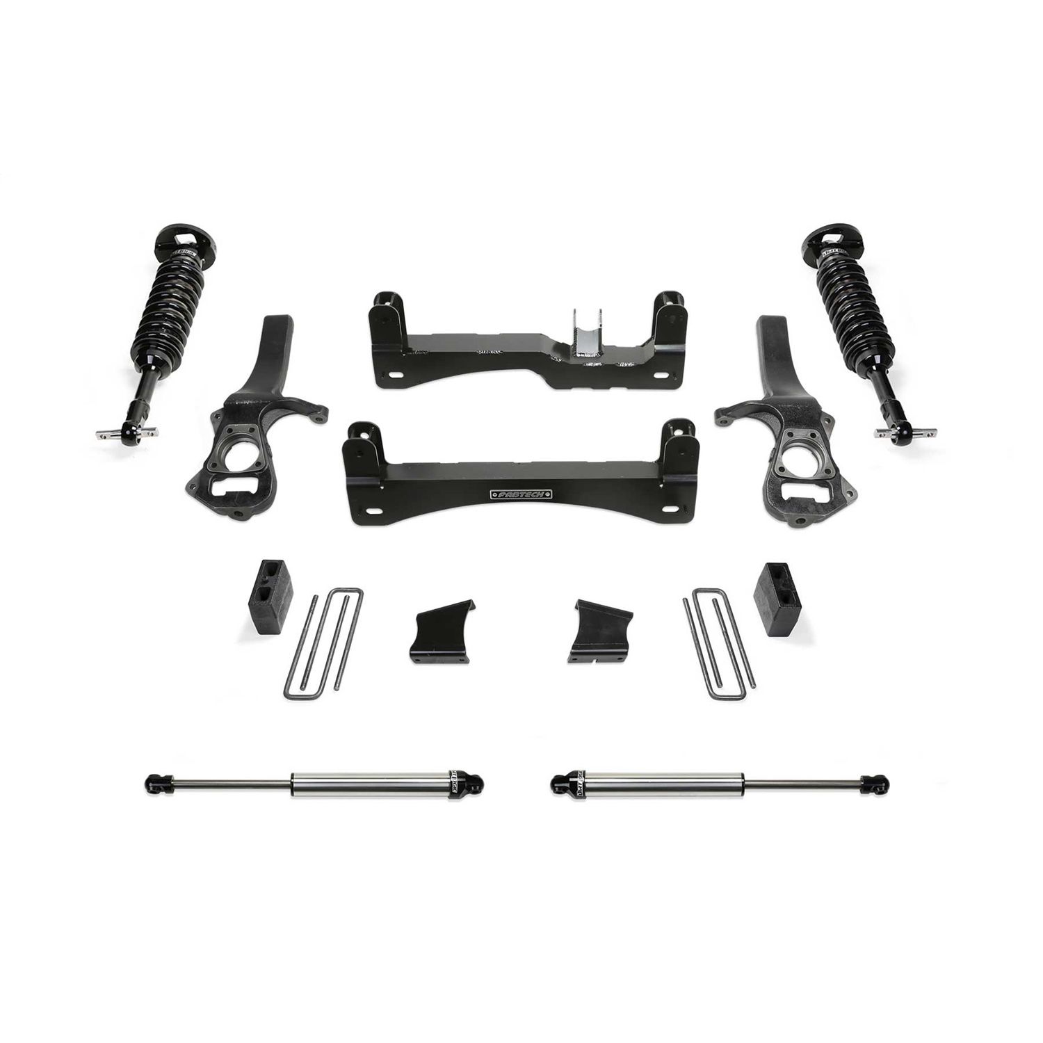 Fabtech's world renowned IFS suspension design for the 2019 GM 1500 2WD provides excellent drive ability both on and offroad. Zero bump steer throughout the suspension cycle and near stock turning radius make this system the top choice for GM owners looking to run 35 in. tall tires.