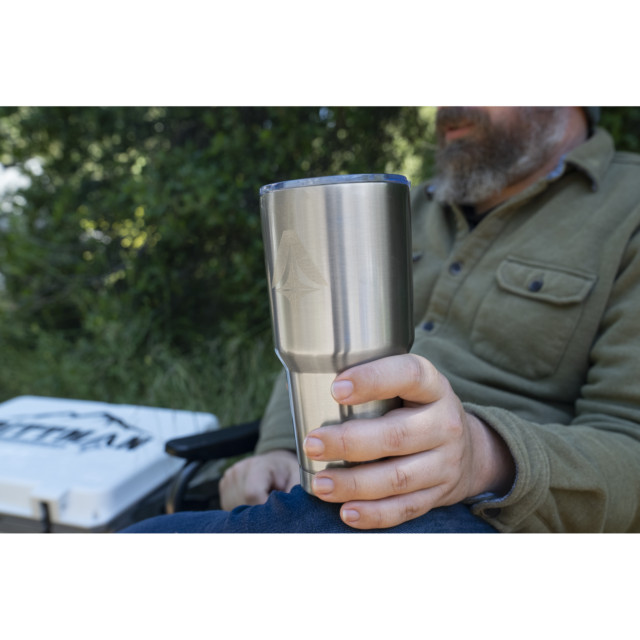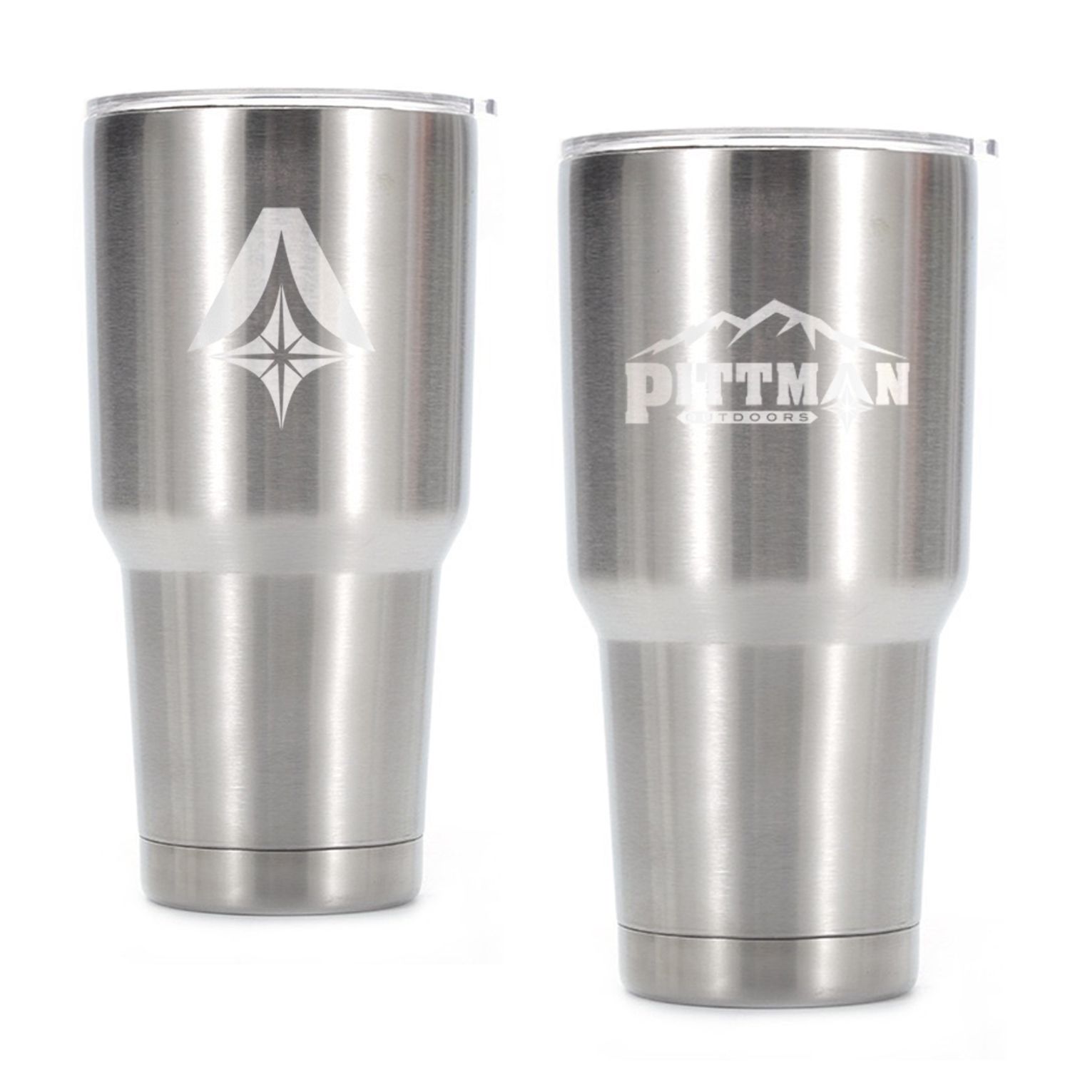 Our 20 oz / .59 L Pittman Outdoors double wall vacuum insulated tumblers are constructed from 18/8 kitchen grade stainless steel. The tapered bottom easily fits most cupholders. BPA free, they are perfect for keeping you hydrated all day.