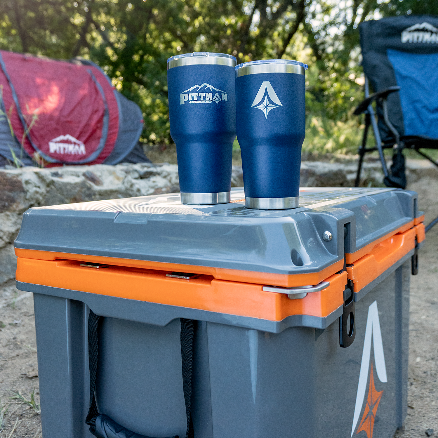 Pittman Outdoors Hydration Tumbler. Experience your ideal drink all day without ever needing to adjust your ice or temperture. Cold or hot we've got this covered. No matter Overlanding across our Great Nation or that half day home town soccer game, we are there for you. Rasing the bar with our premium fitted lid, your spill proof choice to gulp or sip is just a pour away. Pittman Outdoors has the cure for your hot and cold beverages.