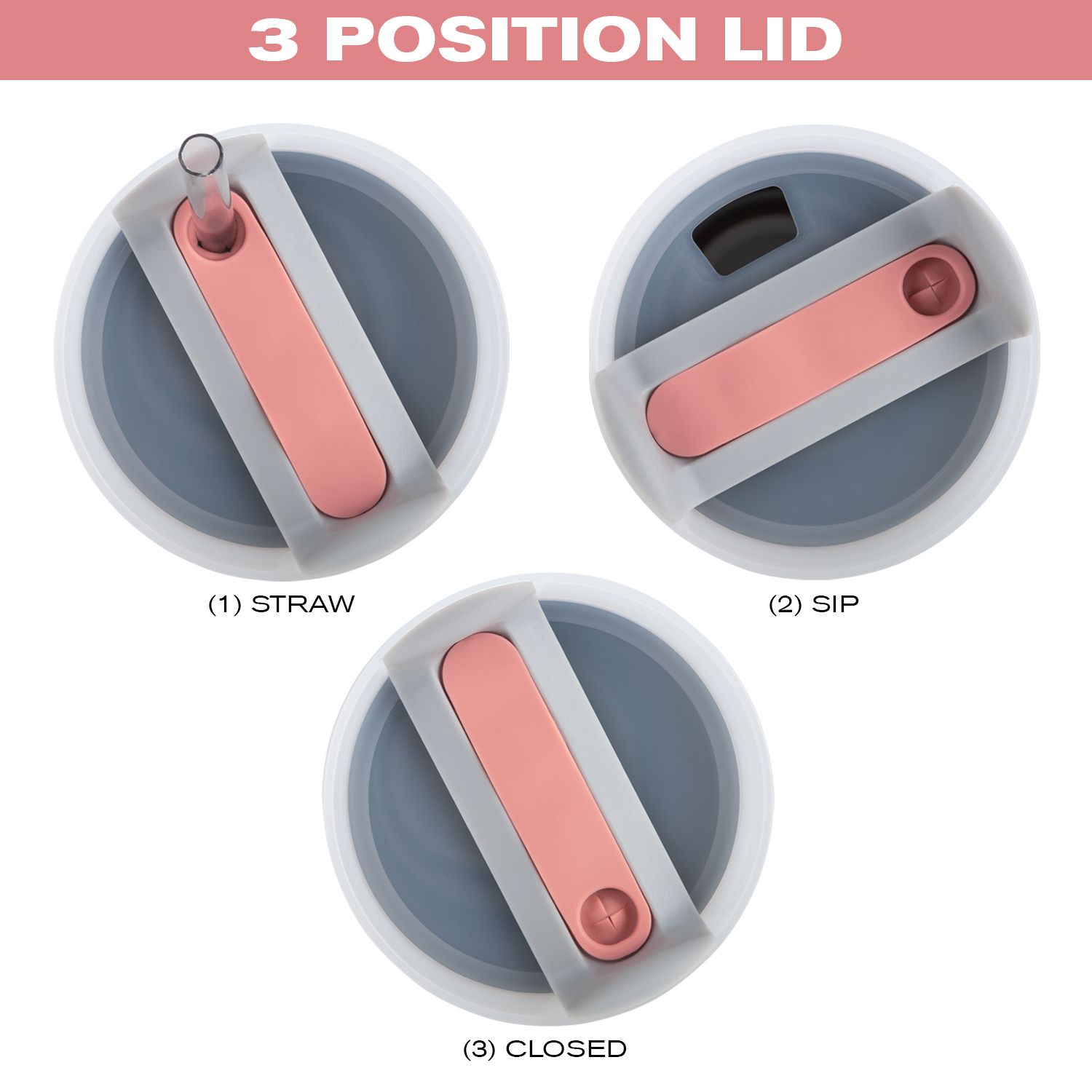 Pittman Outdoors Hydration Tumbler with Comfort Soft Handle. Our 40 oz / 1.18 L Pittman Outdoors double wall vacuum insulated tumblers are constructed from 18/8 kitchen grade stainless steel. They feature a 3 position lid (1. Tab holds the reusable straw in place, 2. Remove straw and rotate tab for sipping, 3. Rotate tab once again for closed position). The comfort-grip handle makes carrying a breeze and the tapered bottom easily fits most cupholders. BPA free, they are perfect for keeping you hydrated all day.