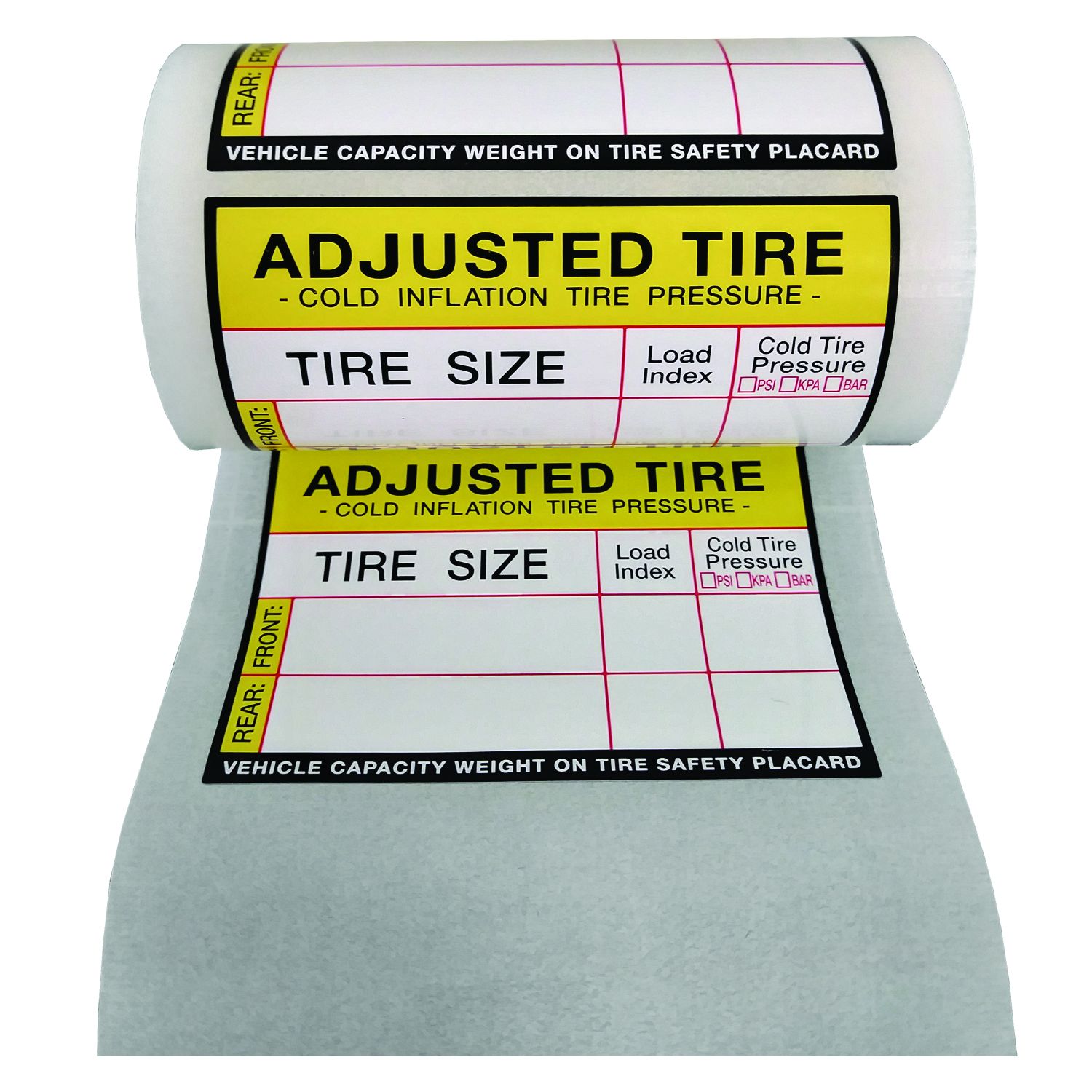 The PVS100 is a box of 100 placard value stickers. Each sticker is 2.5 in. wide by 1.75 in. tall and adheres to the door jam. When the tire size has been changed on a vehicle the sticker allows you to keep track of the adjusted tire information for future reference.