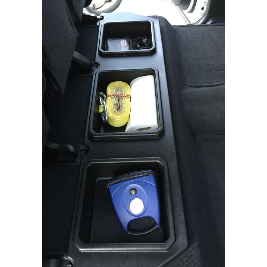 Weighing just 7 pounds, this Tundra Storage Unit consists of Textured durable plastic made out of .187 Thick ABS material. This Storage fits snug in the back seat and the seat folds over acting as a lid with no interior noise.