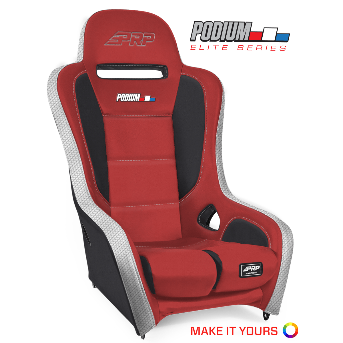 Built for Off-Road! The Podium Elite Series suspension seat features a redesigned look, added lateral leg support for better containment, a thinner split bottom cushion allowing for left leg support while the right leg is extended, and larger harness openings for easier adjustments. The vinyl-coated nylon suspension liner and dual-density foam decrease the impact on the body, reducing the fatigue you feel after a long day in the dirt or dunes. Designed to remain comfortable after several hours in race conditions, the Podium Elite Series is our top suspension off-road race seat. Design your own and Make it Yours! With over 60+ different colors and materials to choose from, you can customize the perfect seat for your ride. Extra options available include Front Goggle Pockets, Rear Storage Pockets, Water Paks, Heated Seats, Air Lumbar, and various Diamond Stitches. *Make sure to check the dimensions of your vehicle, as Extra Wide and Extra Tall Podiums may not fit into your cab space.