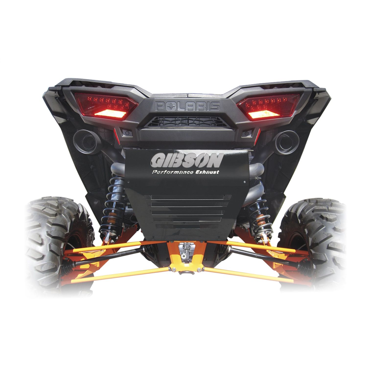 Compliment your Polaris Ranger RZR XP 1000 Turbo with our Gibson Twin Black Ceramic Rear Exit Exhaust. Get an extra increase of 2-4 rear wheel horsepower, 3-5 more foot pounds of torque. With Gibsons non-packed mufflers you can guarantee a consistent level of sound and performance quality for the duration of your vehicles lifetime. An advantage to our non-restrictive muffler means quicker spooling and unleashing of the power the Turbo RZR has to offer. Finished off with a personalized black powder coated rear beauty plate and black Ceramic 4- in. intercooled tips. All necessary hardware is included for a complete hassle free bolt on installation. Tested with a decibel reading of 96 dbs per the SAEJ 1287 testing procedure. USFS Approved Spark Arrestor. This product is sold only for use in connection with EPA -certified, purpose-built, nonroad vehicles used solely for closed course, nonroad competition/racing and not used for any recreational purpose or on public highways or right of ways maintained by and open to the public. Purchasers who/that purchase this product represent and warrant that the product is purchased only in connection with EPA -certified, emission-regulations-exempt and noise-regulations-exempt competition/racing vehicles as interpreted under applicable state and/or federal law.