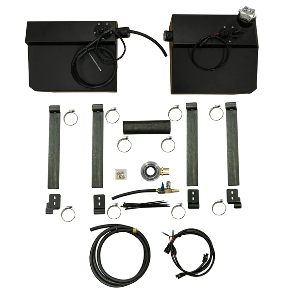 Be a Trail Hero: Thanks to the external port and Buddy Hose, you're not just extending your own adventure – you're also becoming the savior for friends who might run out of gas. A lifeline to keep the adventure going and a hero helping others get back to camp. Removable and Non-Invasive: Planning to switch vehicles or return to your original setup? The AGM EXR Fuel Tank can be easily removed without leaving your car riddled with holes or damaged. It's a flexible investment in your off-road adventures. Elevate Your Off-Road Experience: Don't let your dream trips be limited by fuel capacity. With the AGM EXR Fuel Tank, you're not just extending your range, you're expanding your possibilities. Say "YES" to the adventure of a lifetime with the AGM EXR Fuel Tank. Don't let fuel constraints hold you back, Get your AGM EXR Fuel Tank today and rewrite the rules of how far you can go. Adventure awaits, and now you have the fuel to seize it! Fitment: All 2014 – current Polaris RZR XP4, All 2016 – current Polaris RZR XP4T, All 2018 – current Polaris RZR Turbo S 4 seat. NOTE: Many Polaris RZR do not come from the factory with a front skid plate. If your car does not have a Factory or aftermarket skid plate under the front seats. We strongly recommend you purchase our Skid Plate Kit to protect the EXR fuel tanks from damage/puncture. NOTE: Fits with most aftermarket skid plates.
