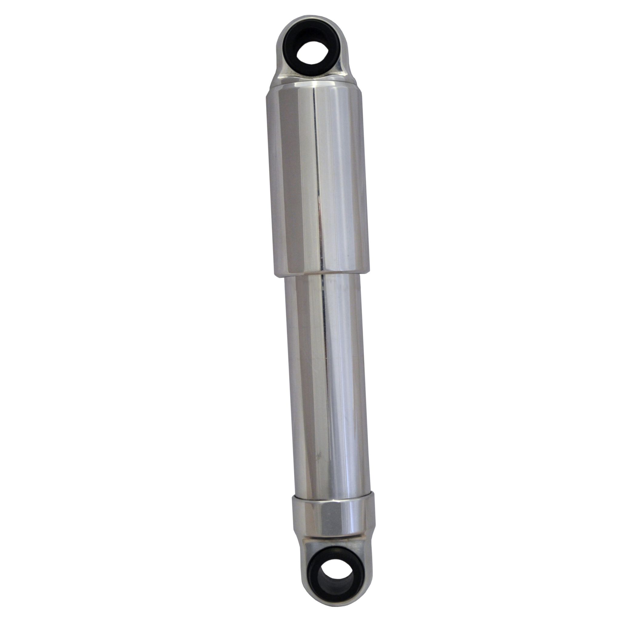 Polished Hot Rod Shock, 4.8" stroke with shaft cover, universal. Includes 1 eye/eye shock with 7/16", 1/2" and 5/8" I.D. sleeves. 9.3" x 14.1" with a 11.5"-12.5" ride height.
