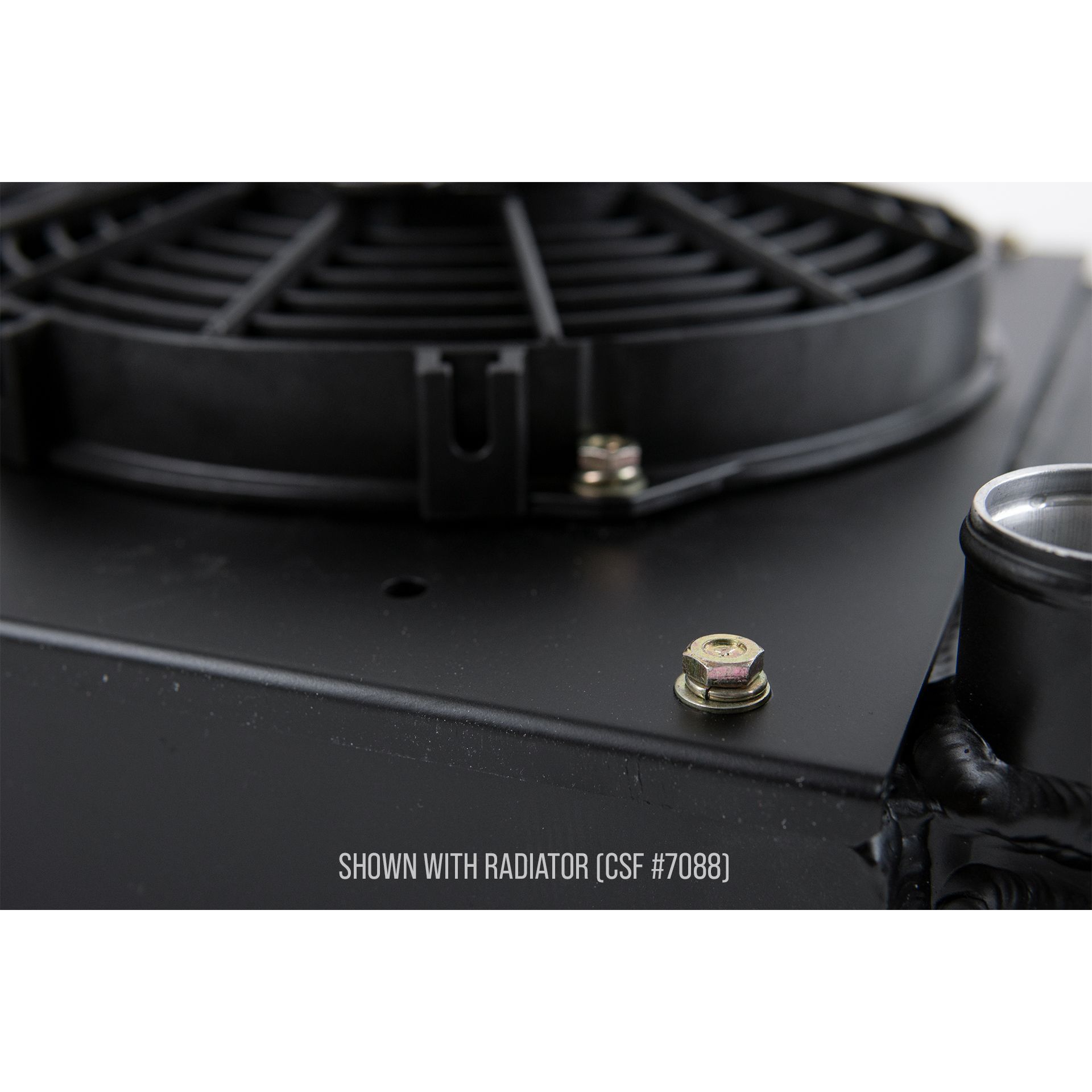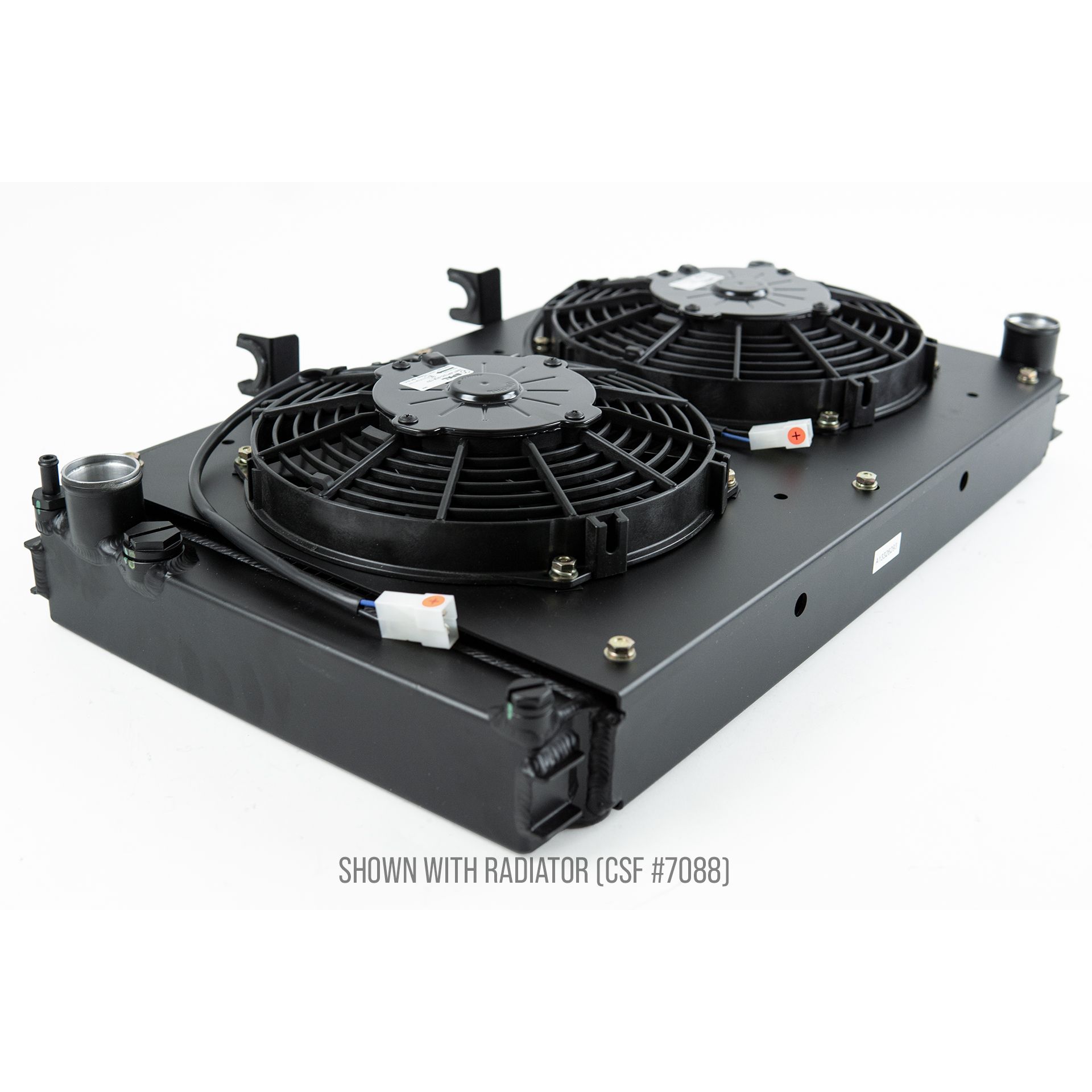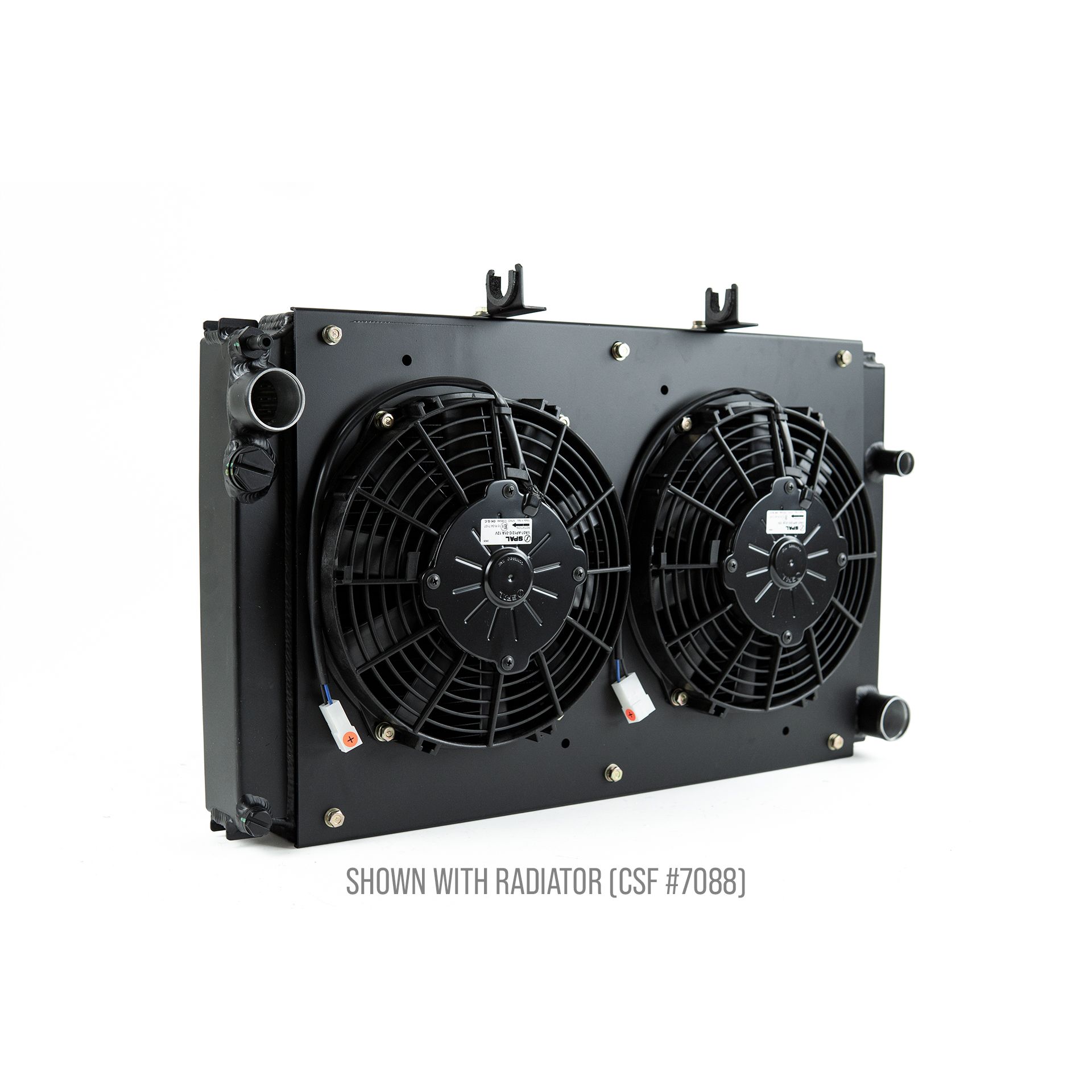 Optional all-aluminum fan shroud with dual 9" high-performance SPAL Fans for the CSF Porsche 944 High-Performance All-Aluminum Radiator (CSF #7088)