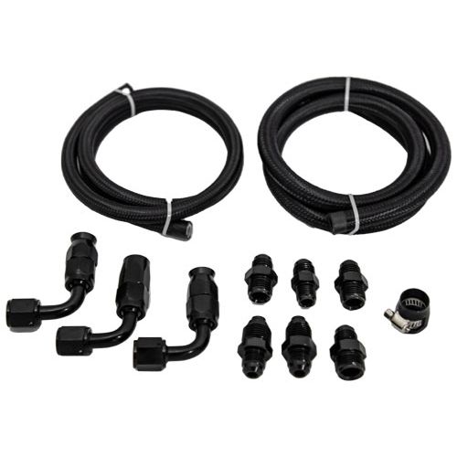 Power Steering Line Kit for Attached Reservoirs; Black Braid; Universal