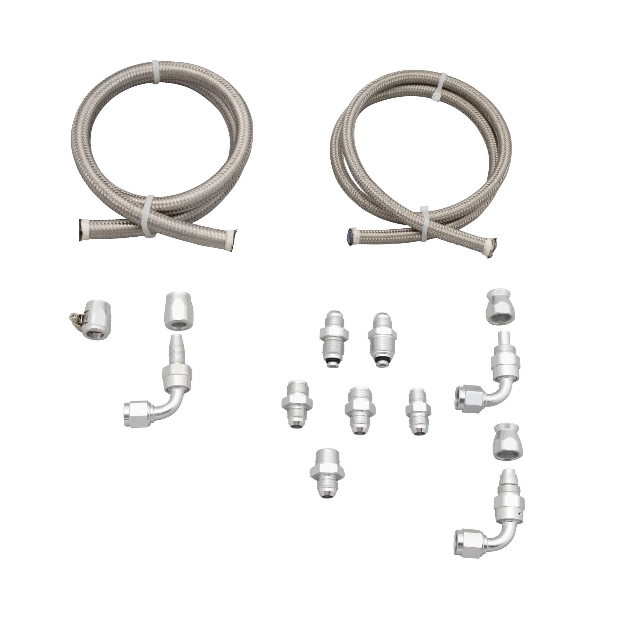 Power Steering Line Kit for Attached Reservoirs; Stainless Steel Braid; Universal