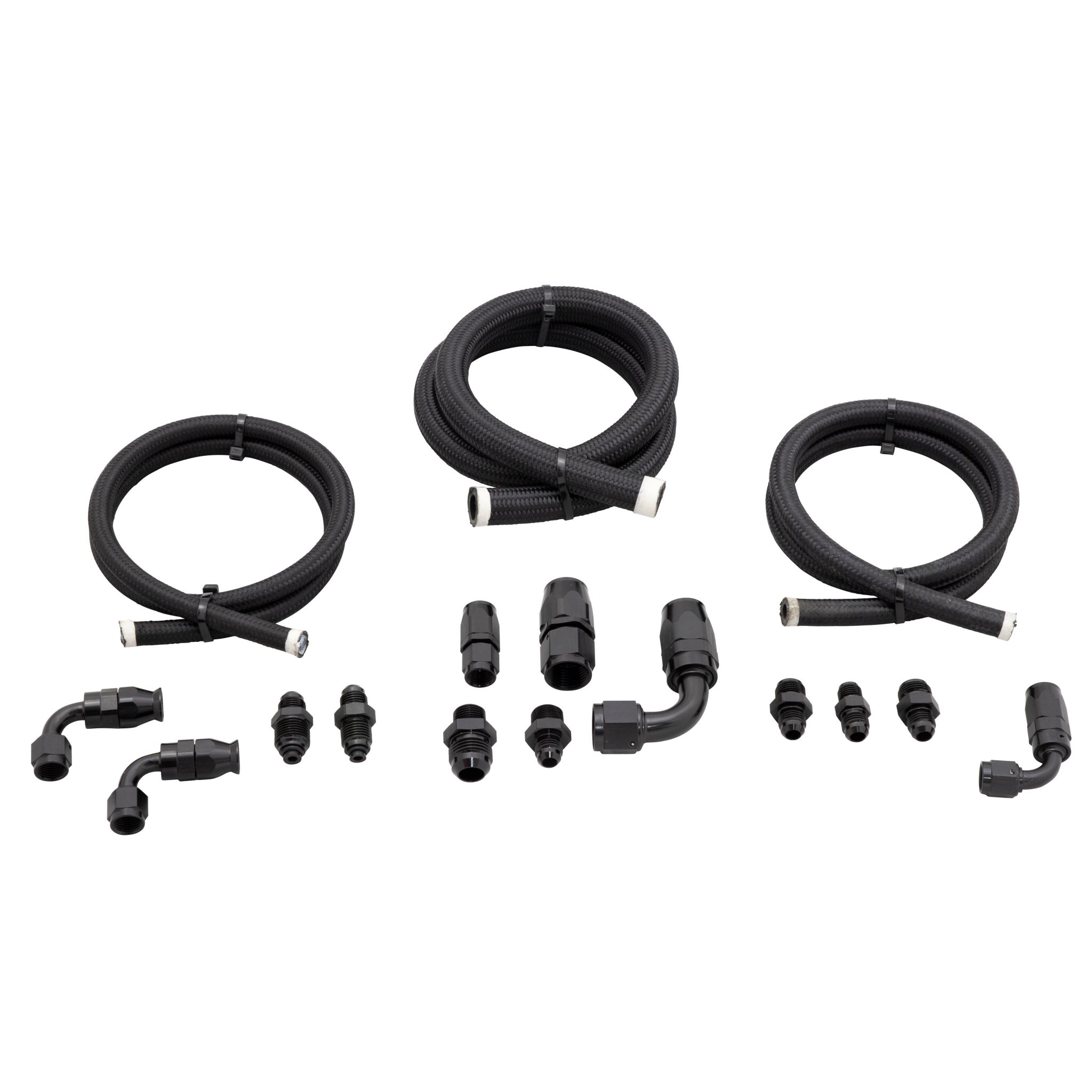 Power Steering Line Kit for Remote Reservoirs; Black Braid; Universal