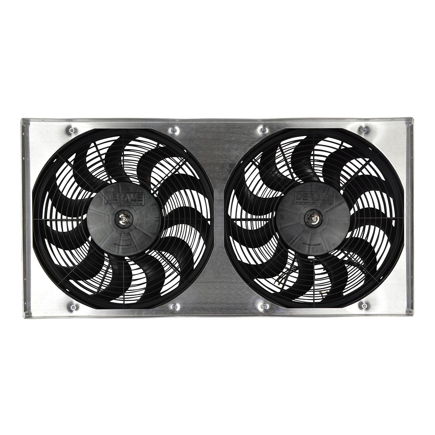 This Dual High Output RAD Fan Powerpack Assembly is part of the HO Aluminum Shrouded Fan Series that is designed with the application in mind. Based on some of the most common radiator core sizes sold today, this unit features an aluminum shroud measuring 34" wide by 1817-1/4" top to bottom and is only 3-3/4" in overall depth to offer an adjustable yet precision fit. The natural, non-finished aluminum shroud gives the user the freedom to polish, anodize, paint, or simply leave it raw to create a truly custom look for an affordable price. The dual 12" high output electric fans are some of the most proven and reliable fans in our line-up. Offering a total of 4000 CFM, this dual electric fan assembly generates the most real-world airflow in the smallest package on the market.