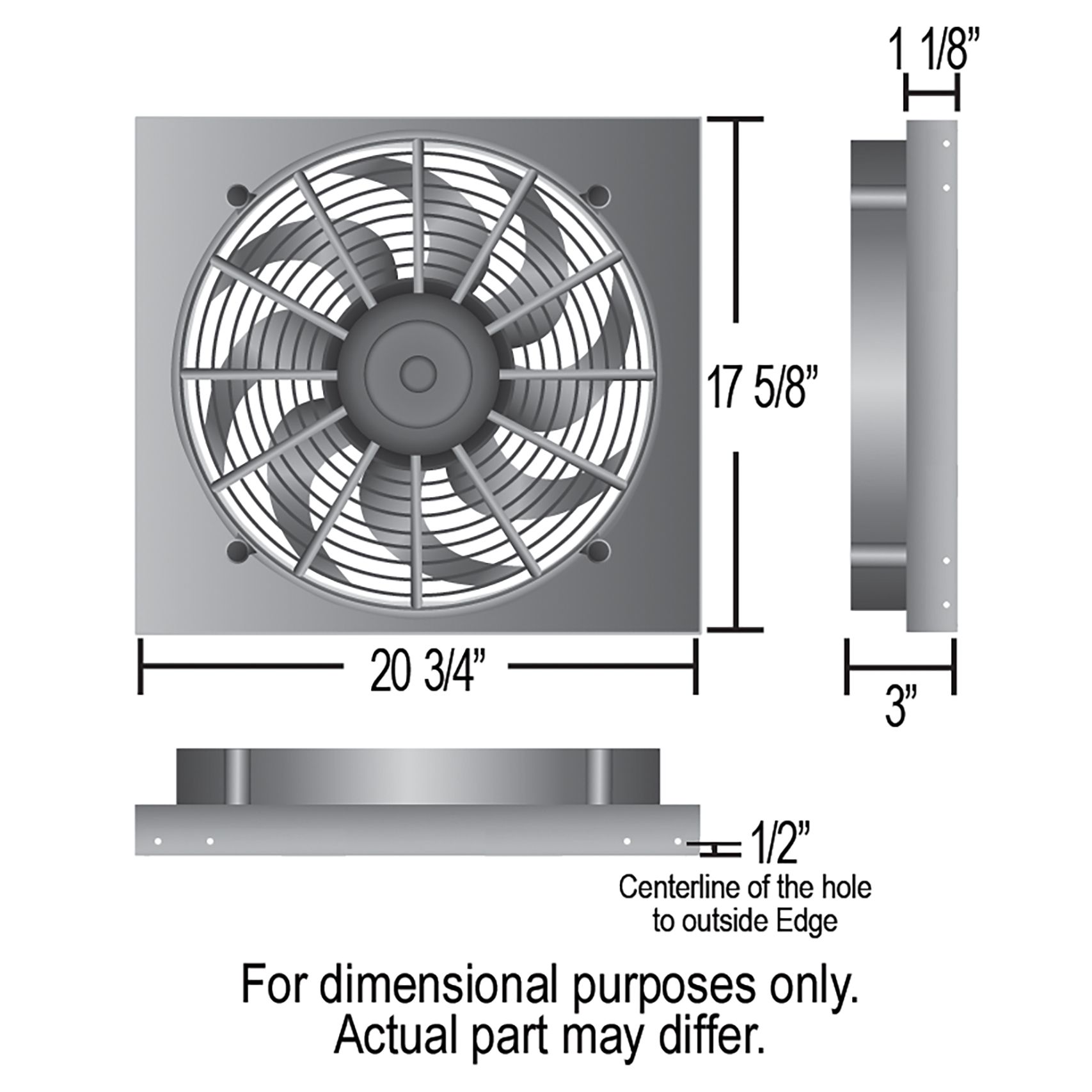 This High Output Single RAD Fan Powerpack is part of the HO Aluminum Shrouded Fan Series designed with popular applications in mind. This assembly measures 20 3/4" wide by 17 5/8" top to bottom and only 3" thick overall to offer a precision fit. The raw aluminum shroud gives the user the freedom to polish, anodize, paint, or simply leave it natural to create a truly custom look for an affordable price. The 17" high output two speed fan is one of the best in our line-up offering 2400 CFM when on high to create the most airflow possible in a compact size.