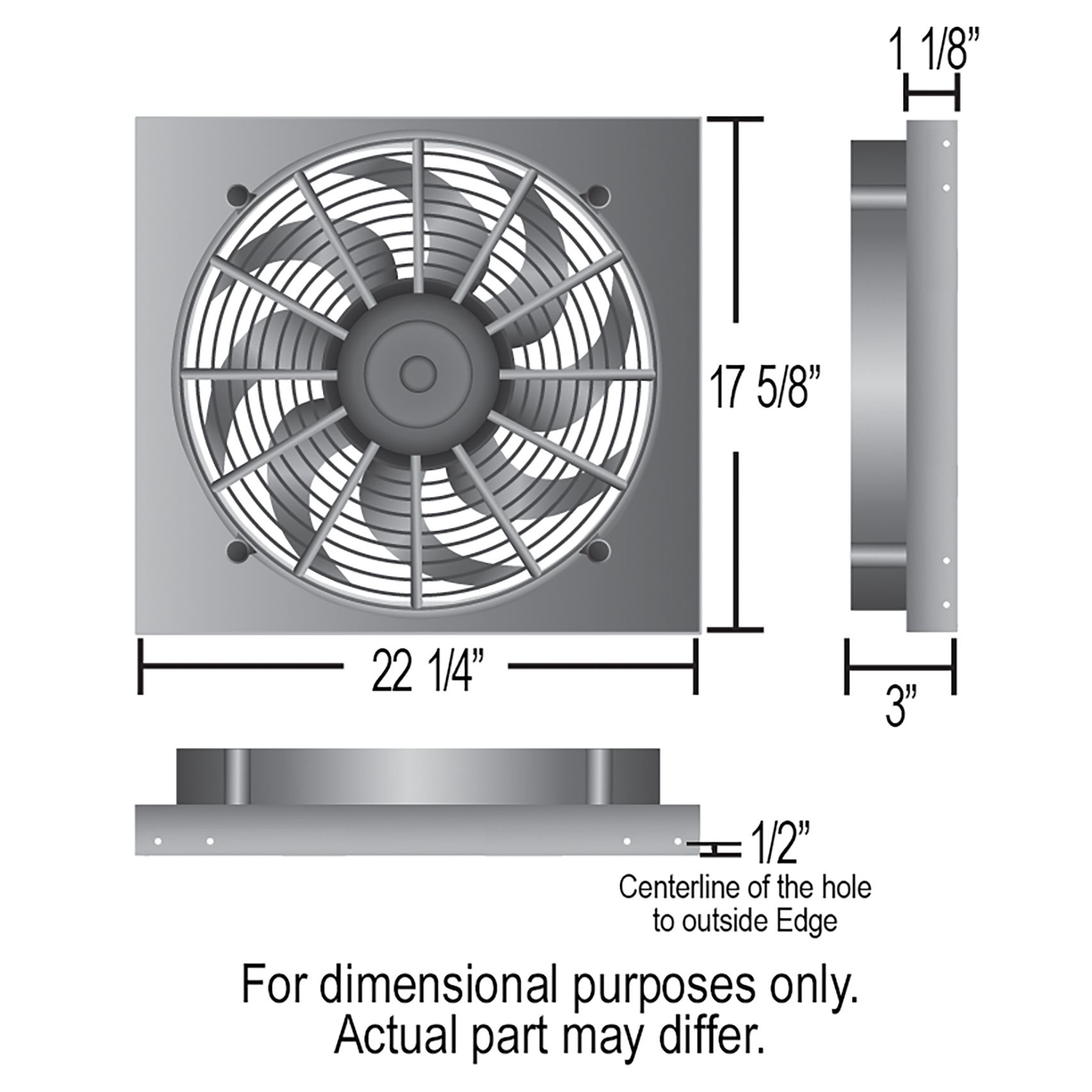 This High Output Single RAD Fan Powerpack is part of the HO Aluminum Shrouded Fan Series designed with popular applications in mind. This assembly measures 22 1/4" wide by 17 5/8" top to bottom and only 3" thick overall to offer an adjustable yet precision fit. The raw aluminum shroud gives the user the freedom to polish, anodize, paint, or simply leave it natural to create a truly custom look for an affordable price. The 17" high output two speed fan is one of the best in our line-up offering 2400 CFM when on high to create the most airflow possible in a compact size.