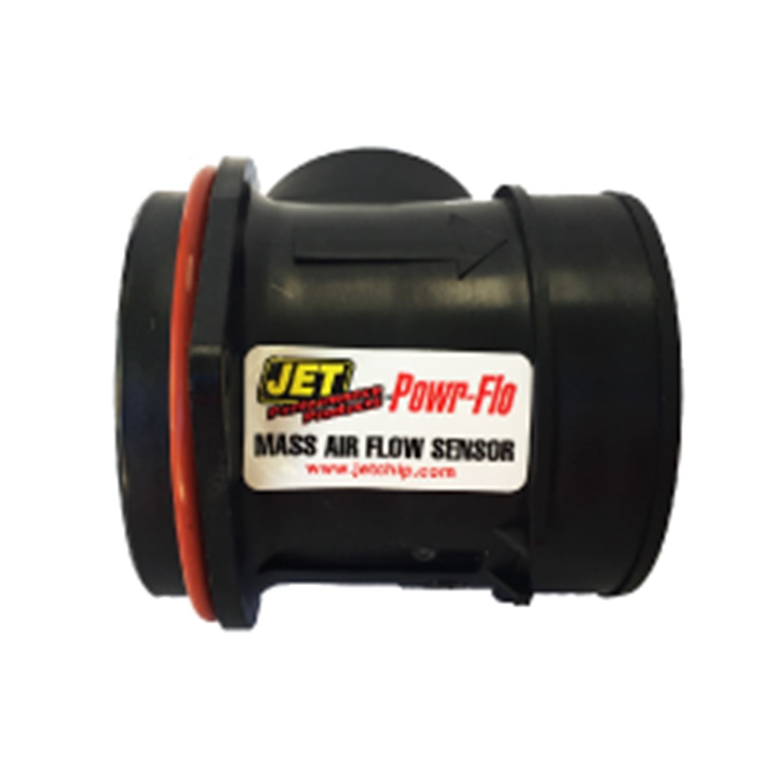 The JET Powr-Flo Mass Air Sensor delivers improved horsepower, torque and mileage from your car, truck or SUV by simply replacing the restrictive stock mass air sensor. The factory sensor not only is a major restrictive point in stock intake systems, but it also limits the full potential of aftermarket cold air intake systems. The flow bench tested design of the JET Mass Air Sensor provides airflow increases of up to 45% and installs in 10 minutes or less. Compatible with other aftermarket upgrades such as computer upgrades, cold air intakes, TBI spacers, free flow exhaust systems, etc. Up to 13 more hp over stock mass air sensor and Improved Mileage
