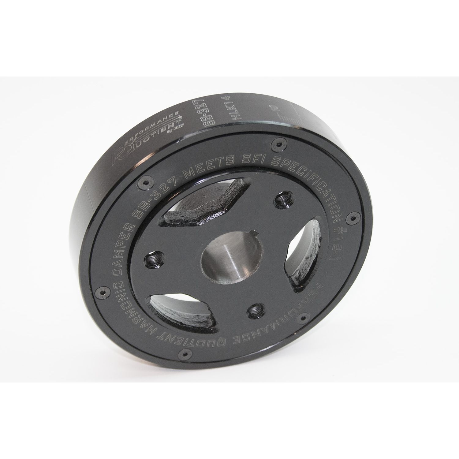 PRW SFI Certified steel dampers are perfect for the weekend warrior or the all out racer. These dampers can be used for the street, for racers that drive their vehicles to and from the track. The inner hub and outer ring are manufactured from high quality billet steel forgings, with elastomer injected between the two component parts. The hub and the ring are manufactured with inner and outer ridgelines that secure the outer ring to the inner hub. These products are available in black epoxy or polished steel with an epoxy clear coat.