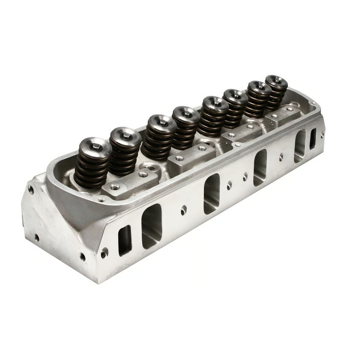 Serious street performance, mild bracket racing and oval track. Maximum torque and throttle response from 3,500 to 7,800 RPM. Best for 363-427 cubic inch engines. Works with most standard components. Every intake port, exhaust runner, valve bowl, and every combustion chamber is 100% CNC machined on special dedicated PRO1 castings. These heads are ideal for high compression, big cubic inch small blocks and are great for supercharged applications. Exhaust runners are raised .135 in. for improved flow. Manganese Bronze valve guides are used for long life, and hardened valve seats provide durability with unleaded fuels. Features 3.000 in. exhaust bolt pattern. Assemblies include Stainless Steel valves, premium springs, locks, retainers, studs, guide plates and seals.