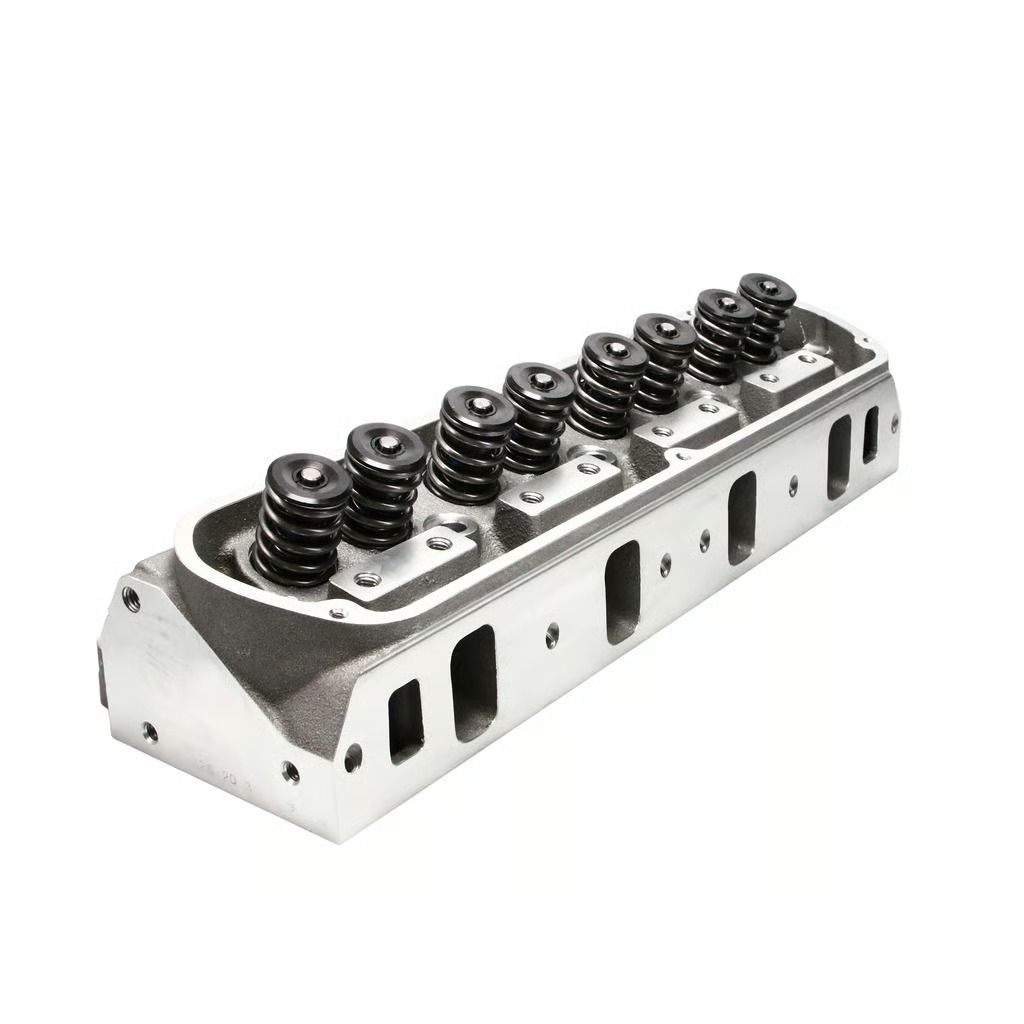 Serious performance upgrade for street, mild bracket racing and oval track racing. Maximum torque and throttle response from idle to 6,800 RPM. Best for 347-427 cubic inch engines. Works with most standard components. PRO1 20 Deg 195cc Aluminum cylinder heads feature increased airflow for larger engines and higher RPM usage. Standard valve angle and spacing is retained for bolt on compatibility. Exhaust runners are raised .135 in. for improved flow. Manganese Bronze valve guides are used for long life, and hardened valve seats provide durability with unleaded fuels. Features both 2.500 in. and 3.000 in. exhaust bolt patterns. Assemblies include Stainless Steel valves, premium springs, locks, retainers, studs, guide plates and seals.