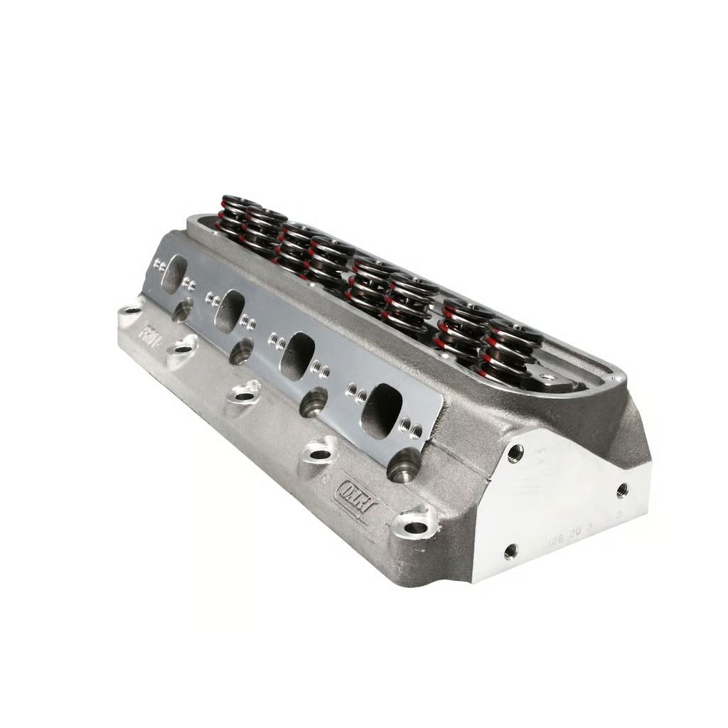 Serious performance upgrade for street, mild bracket racing and oval track racing. Maximum torque and throttle response from idle to 6,800 RPM. Best for 347-427 cubic inch engines. Works with most standard components. PRO1 20 Deg 195cc Aluminum cylinder heads feature increased airflow for larger engines and higher RPM usage. Standard valve angle and spacing is retained for bolt on compatibility. Exhaust runners are raised .135 in. for improved flow. Manganese Bronze valve guides are used for long life, and hardened valve seats provide durability with unleaded fuels. Features both 2.500 in. and 3.000 in. exhaust bolt patterns. Assemblies include Stainless Steel valves, premium springs, locks, retainers, studs, guide plates and seals.