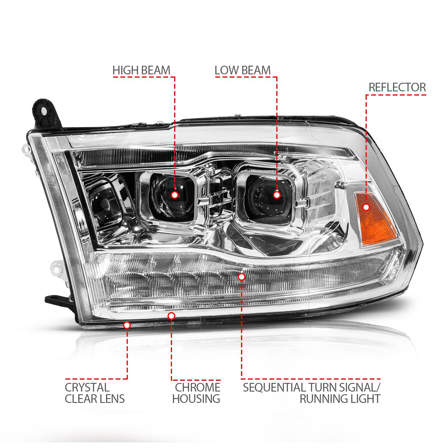 Projector Headlights Chrome Housing w/Switchback+Sequential LED Plank