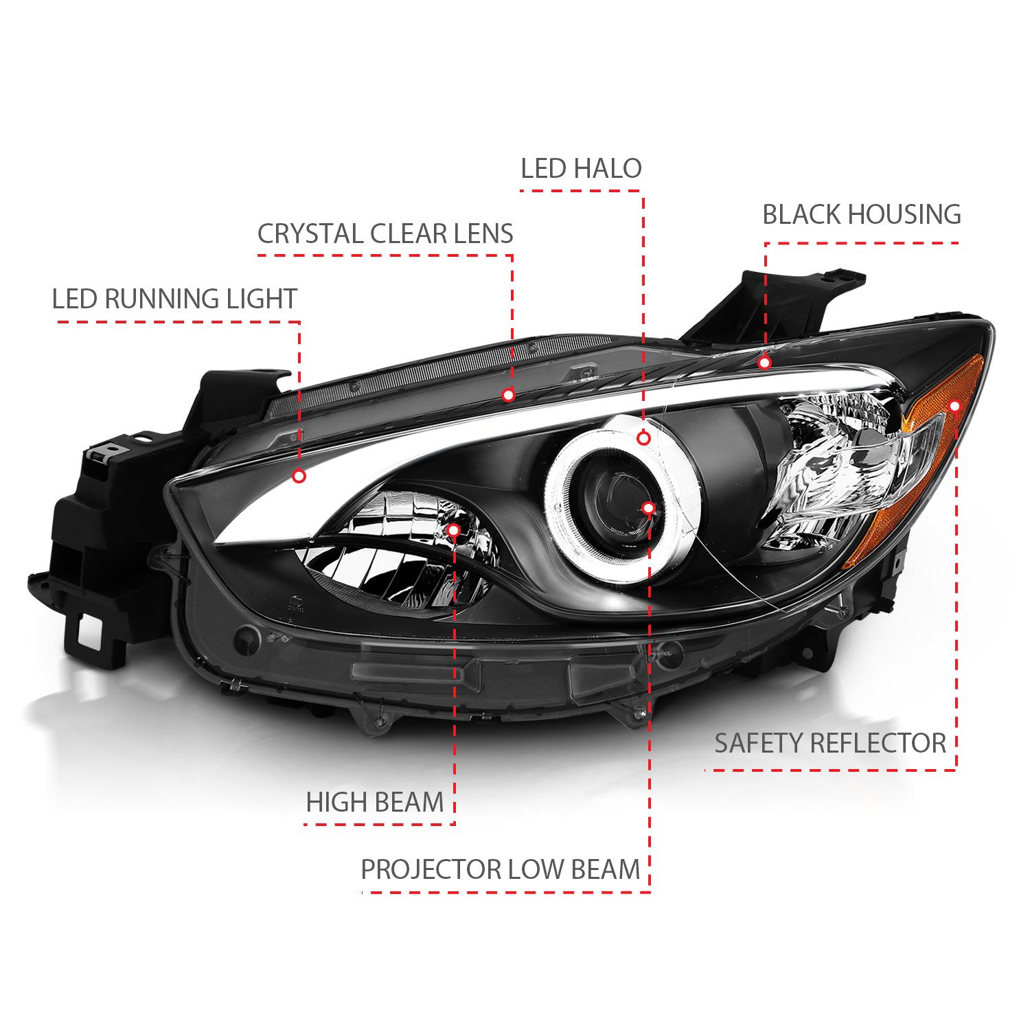 Projector Headlight Set w/Halo – Clear Lens – Black Housing – Pair