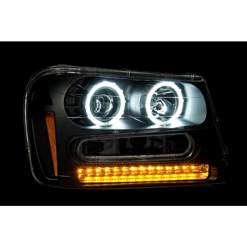 Projector Headlight Set, w/Halo, Clear Lens, Black Housing, Pair, CCFL Guaranteed To Improve Your Vehicles Appearance. Rigorously Tested For Fit And Function. Simple Plug And Play. No Modifications Required. Easy Installation Using Common Hand Tools. Uses Stock Mounting Locations And Hardware. D.O.T. Compliant To S.A.E. Standards. Sold As A Pair. Does Not Fit 06-09 Trailblazer LT Models.
