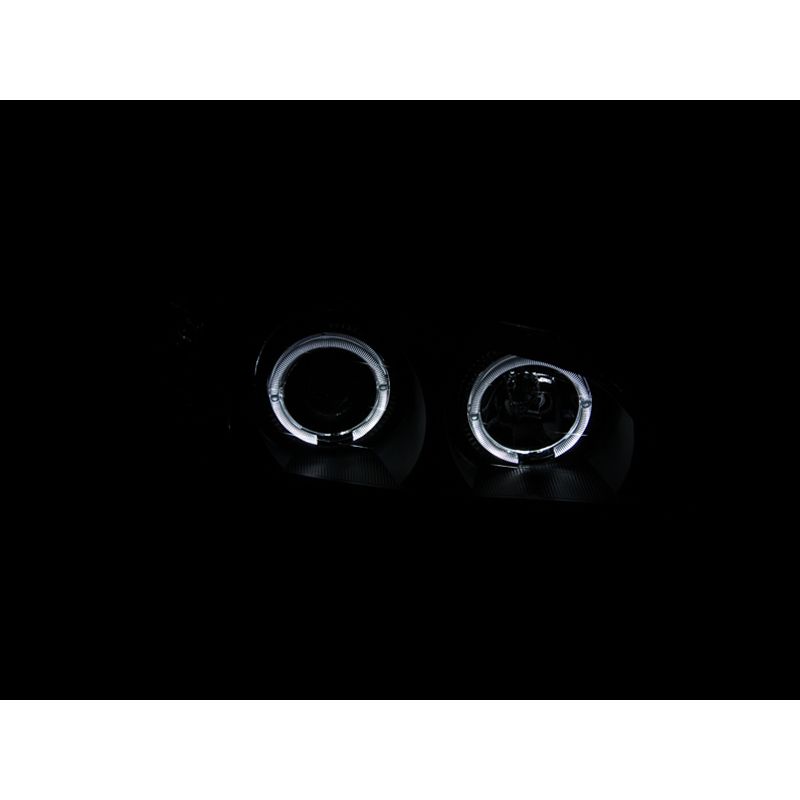 Projector Headlight Set, w/Halo, Clear Lens, Black Housing, Pair, For Use w/Non HID Models Only Guaranteed To Improve Your Vehicles Appearance. Rigorously Tested For Fit And Function. Simple Plug And Play. No Modifications Required. Easy Installation Using Common Hand Tools. Uses Stock Mounting Locations And Hardware. D.O.T. Compliant To S.A.E. Standards. Sold As A Pair. Does Not Fit Models With Factory HID Bulbs.