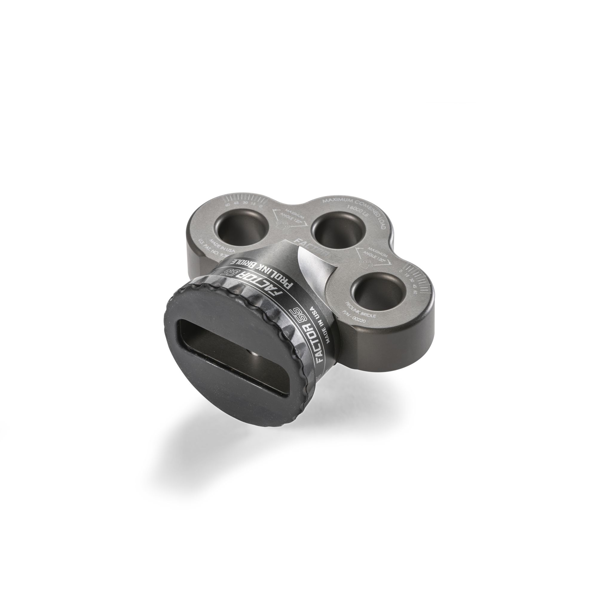 The ProLink Bridle is a specialized commercial product featuring three individual shackle mounting holes that allow the winch operator to mount fixed-length bridle links to the outside positioned holes for common bridle towing, as well as a single-centered shackle mounting point for a conventional single shackle recovery point. Dedicated mounting points prevent dangerous shackle side loading conditions due to the pivoting feature of the shackle pin mounting hole. This allows for CLOSED SYSTEM WINCHING techniques to be applied. For commercial high repeating bridle towing, dedicated self-centering shackles result in a safer means to bridle tow. This ProLink Bridle operation is similar to fish plate towing used in the ship towing industry where boat yaw is undesirable. Like all models in the ProLink family, the ProLink Bridle is engineered and made in the USA from 6000 series billet aluminum and is equipped with a 6Al-4V titanium double shear pin.