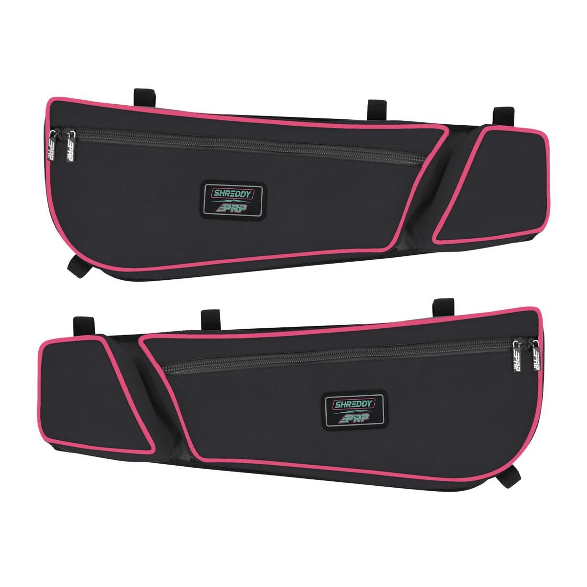 PRP Shreddy Front Door Bag with Knee Pad for Can-Am Maverick X3 (Pair), Black and Pink