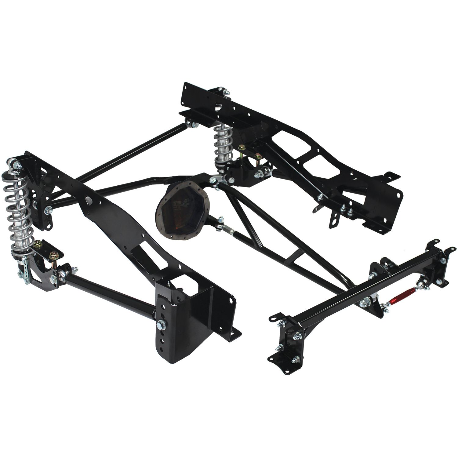 Rear coil-over conversion kit for 73-87 C10 trucks. Includes single adjustable shocks, high travel springs, and all hardware.