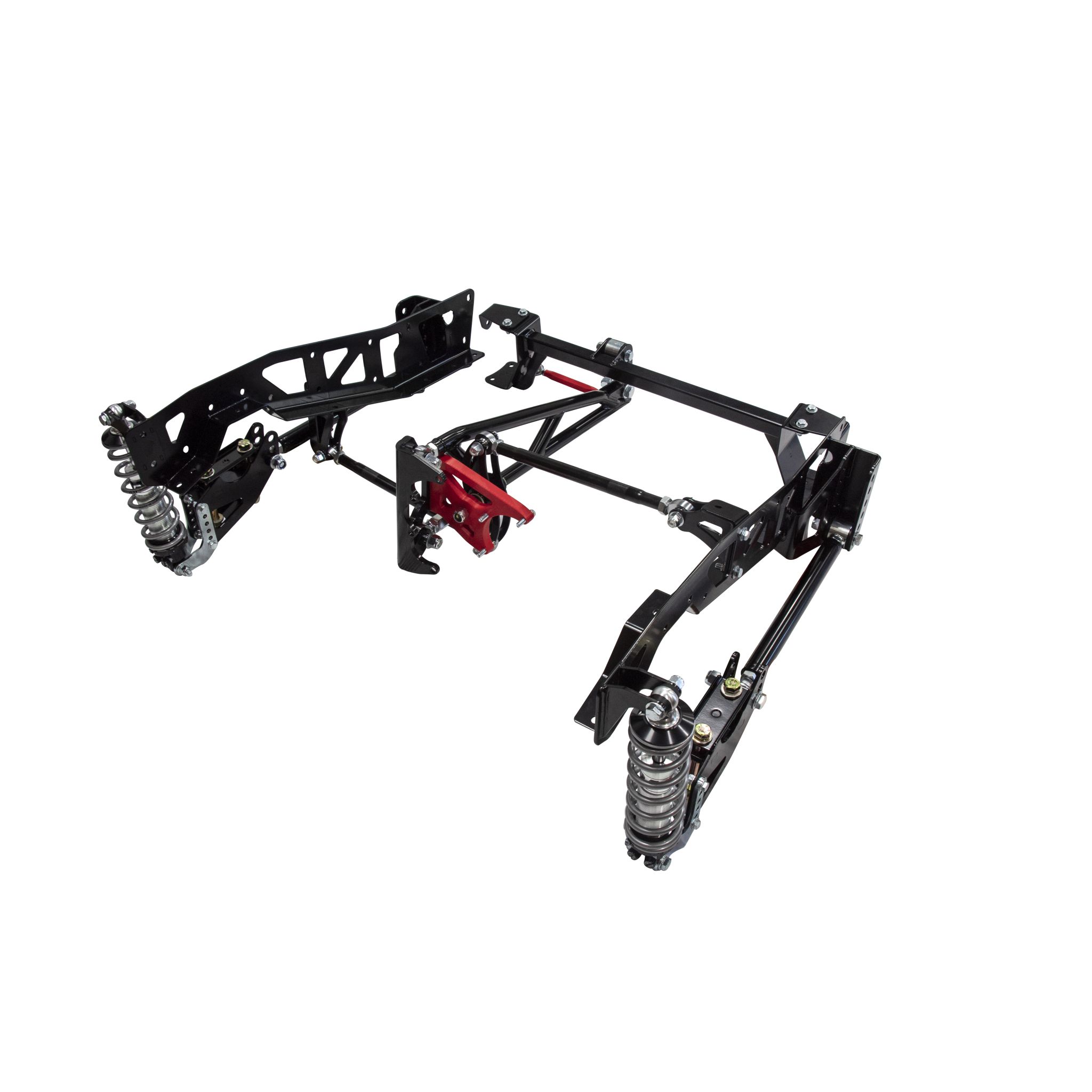 QA1's unique torque arm design maximizes performance without the inherent binding issues of other systems, all while achieving a 4" to 7" drop. This bolt-in system also offers incomparable adjustability: the watts link, torque arm, trailing arms, bracket mounts, and shocks are all adjustable. Double-adjustable shocks offer independent rebound and compression tunability. Great for trucks that will see track time or drivers who really want to dial in ride quality and performance handling on the street. With registration, your shocks can be backed with a best-in-class Limited Lifetime Warranty. Keep your rear end housing center in the truck with QA1's unique watts link design. This compact system keeps your tires from rubbing the sides of your bed, while providing clearance for rear exiting exhaust systems. Adjustable lower trailing arms allow you to dial in your wheel base for the perfect wheel and tire fitment inside your wheel well. Parts come powder coated and ready to install with all necessary hardware. You can bolt up the kit right in your garage or work with your local shop. Made in the USA. Fitment Notes: This system only fits short wheel base trucks. Designed to use stock '73-'79 F100/F150 9" axle with iron 3rd member and direct fit aftermarket 9" axles with iron 3rd member. Aluminum 3rd member will NOT work.