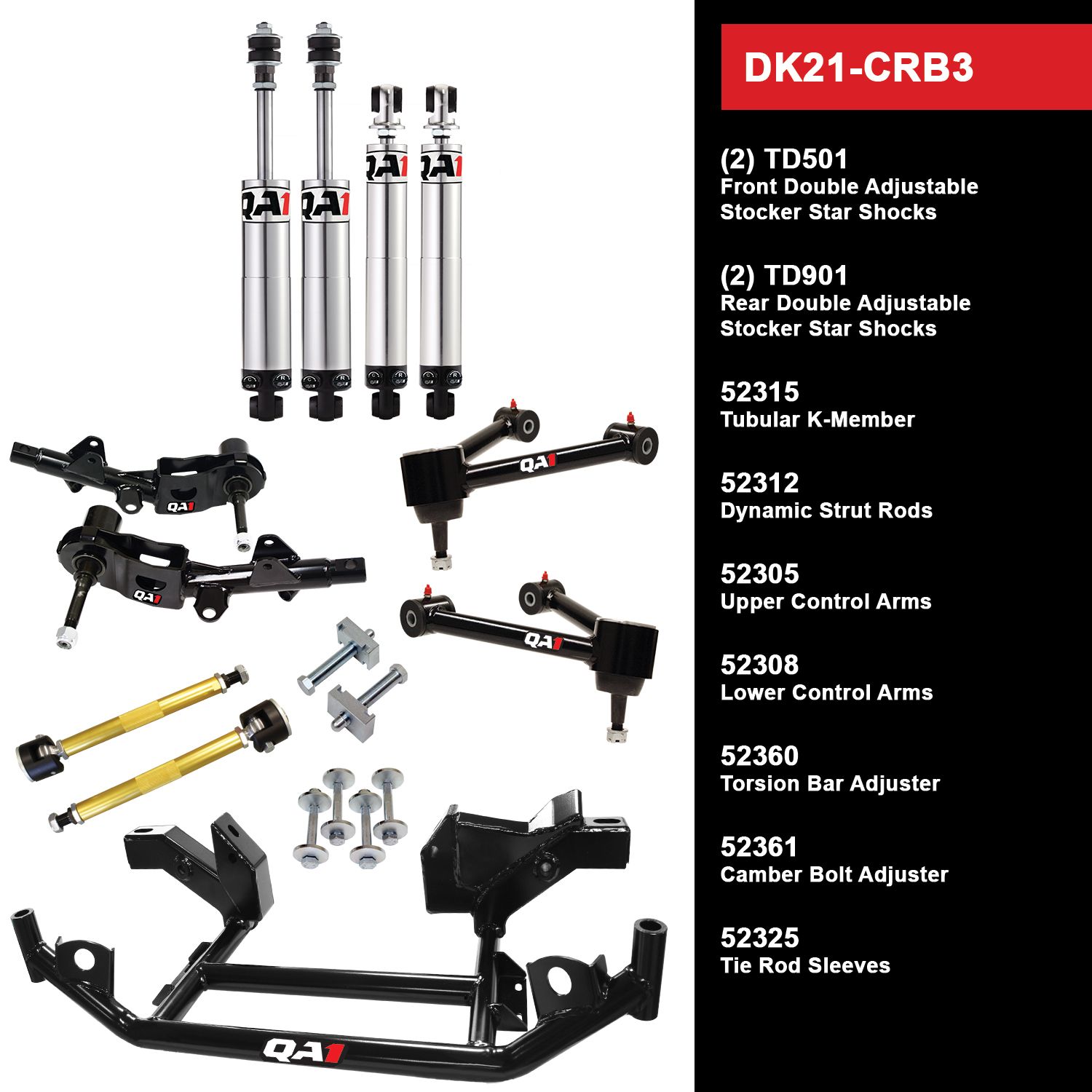 Looking for a better launch, straight line stability and consistent performance for your Charger, Belvedere, Coronet, GTX or other Mopar B-Body? Turn to QA1's drag racing suspension kits for a full-vehicle upgrade that fits your needs. Available in three different levels of performance, these drag racing kits offers easy, bolt-in installation and seamlessly works with whatever OE component each piece attaches to. Don't want to make the investment right away? No problem. You can build your car in stages, using our parts list as a road map to get to the level of performance you want and have the peace of mind knowing you won't have compatibility issues.
