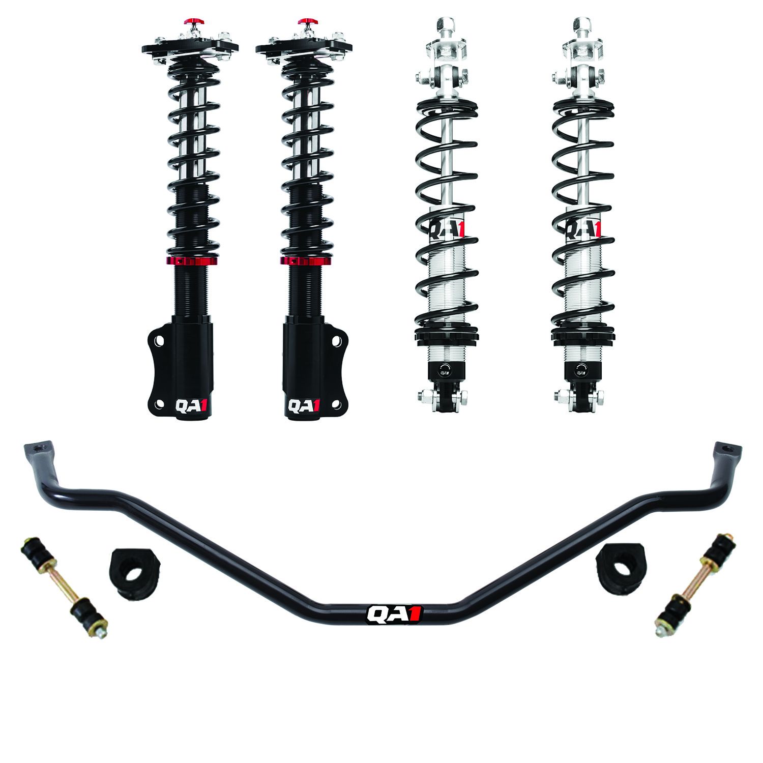 Product Overview The QA1 Level 1 Handling Kit is an ideal choice for people seeking a more aggressive stance, better ride and handling from their SN95 Mustang. The kit includes single adjustable front coil-over struts, rear coil-overs, and front sway bar. Inverted Front Struts and Rear Coil-Overs Front struts feature an inverted cartridge design, large diameter shaft, and lightweight aluminum body for improved suspension performance. The lightweight, high-travel springs with proven spring rates are optimized for improved handling, without sacrificing comfort. These kits offer up to 2" lower than stock ride height adjustment to dial in the perfect stance for your Mustang. Single-adjustable rear coilovers are a good option for the street with the ability to tune for the track. Lightweight Caster Camber Plates Aluminum caster camber plates improve Mustang handling and performance. Lighter and sleeker than steel, they offer precision adjustment to fine-tune suspension geometry for optimal performance. Front Sway Bar QA1's 1 front sway bar sharpens steering response, reduces body roll, and keeps your car planted in corners. Easy, Bolt-In Installation Our commitment to thoughtful product design is evident in every fully bolt-in kit we produce, to deliver the highest level of performance, while ensuring trouble-free compatibility. Made in the USA QA1 struts, coilover shocks, and tubular suspension is proudly made in Lakeville, Minnesota. Fitment Notes Not compatible with Cobra IRS