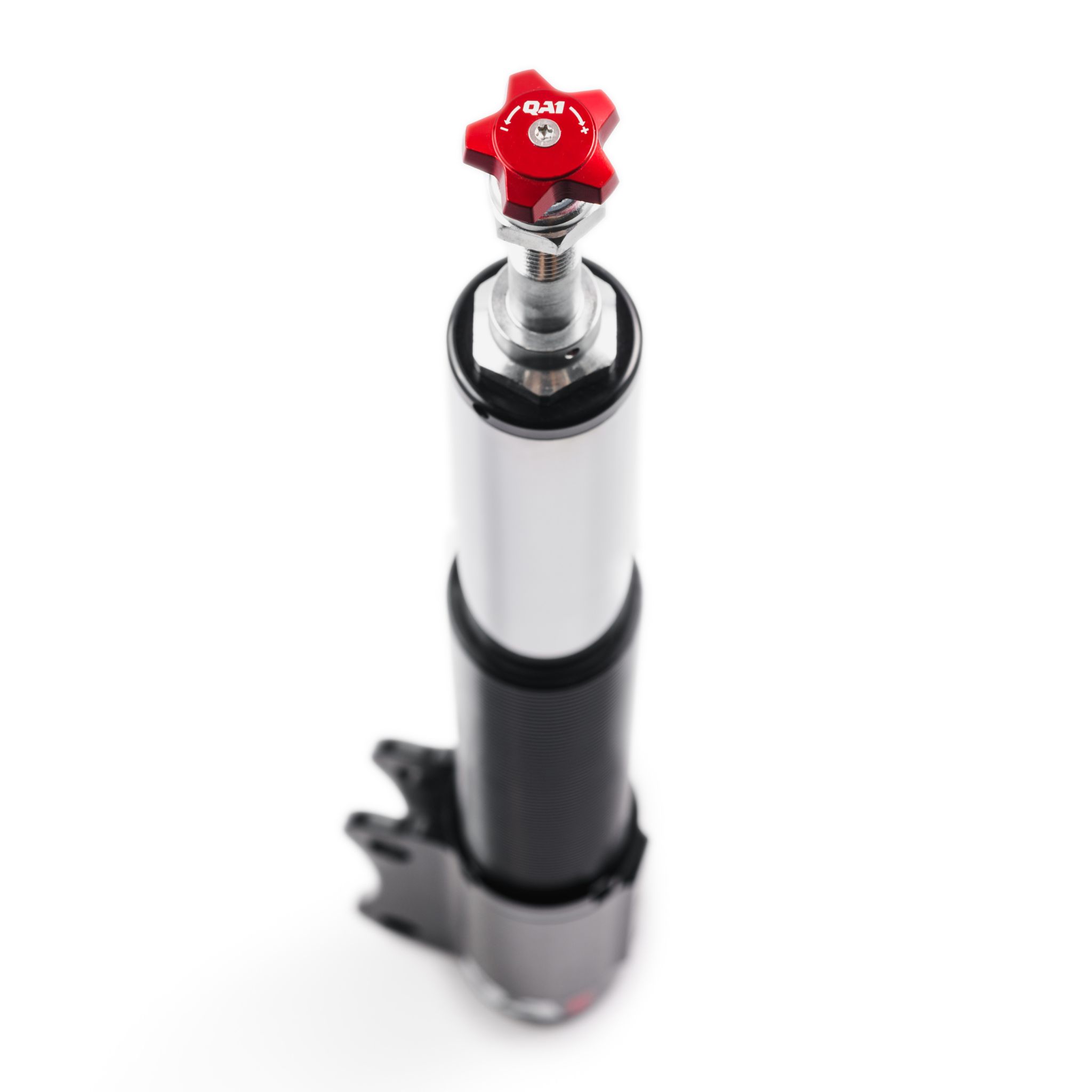 Product Overview The QA1 Proma Star Strut is a perfect choice for your Mustang. It's ideal for both street and race applications, thanks to its lightweight inverted strut design. This allows you the best possible performance and handling out of your car, regardless of your driving style. Inverted Strut Design A major advantage of the Proma Star strut is its inverted cartridge design. Unlike conventional designs, its large diameter shaft resists side loading, ensuring smoother and more consistent performance during hard cornering and braking. The lightweight threaded aluminum body offers reduced unsprung weight improving suspension responsiveness, leading to better handling and traction. Single-Adjustable Valving Single-adjustable struts are a good option for street-driven cars that also see occasional track use. Rebound adjustment is made under the hood with an easily accessible 18 position knob at the top of the strut tower. A good choice for drivers wanting a comfortable ride on the street with the ability to firm up the suspension to hit the curves. Easy, Bolt-In Installation Our commitment to thoughtful product design is evident in every fully bolt-in kit we produce, which guarantees a hassle-free installation process. Made in the USA QA1 Proma Star struts are proudly made in Lakeville, Minnesota. Fitment Notes Includes one individual strut only. QA1 Caster Camber plates are required and sold separately. 05-14 Mustang CC115 Coil over conversion kits available as COK113 2005-2014 Mustang Strut is not compatible with factory size springs